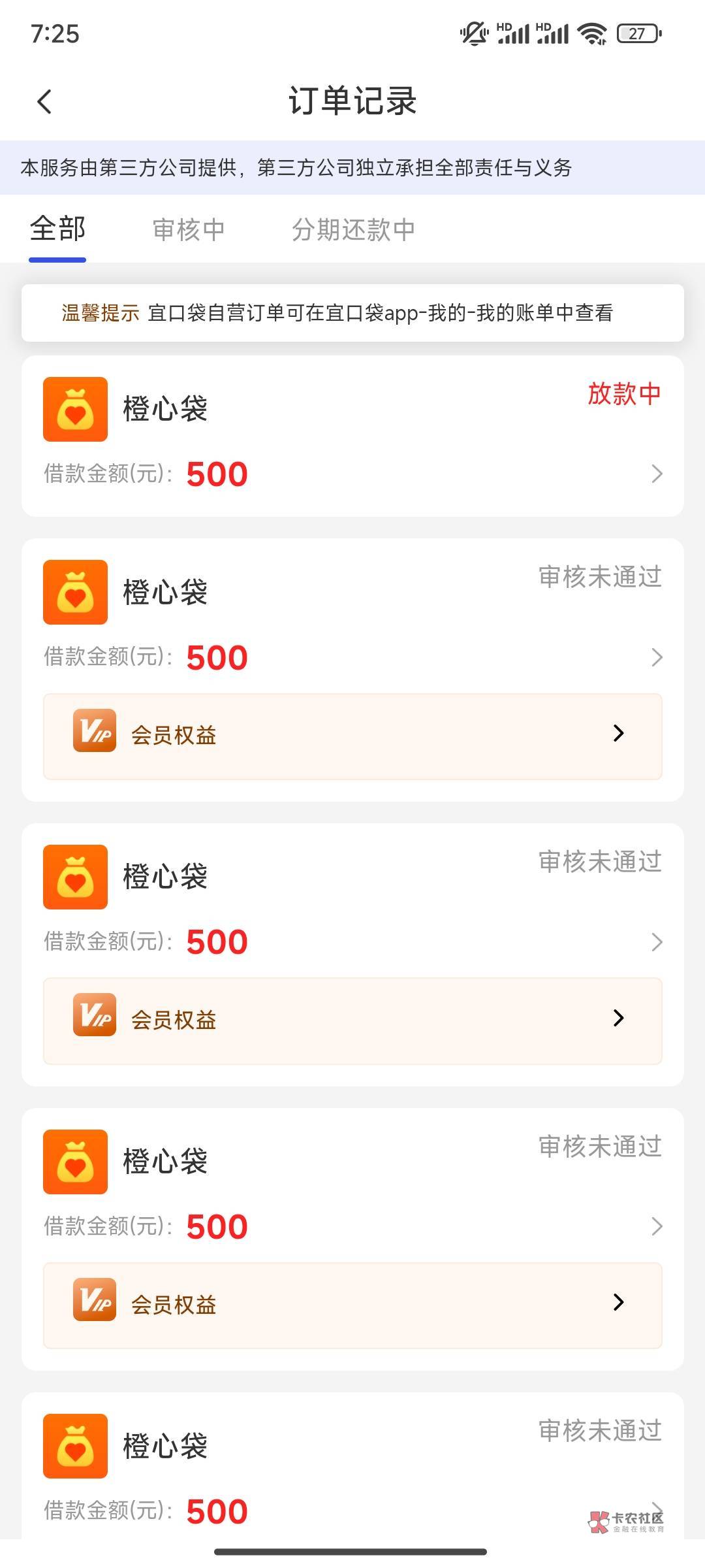 第一笔下500我直接转到v了没扣会员,第二笔前天晚上申请的,到现在一直放款中,进去也没提示让支付会员费啊