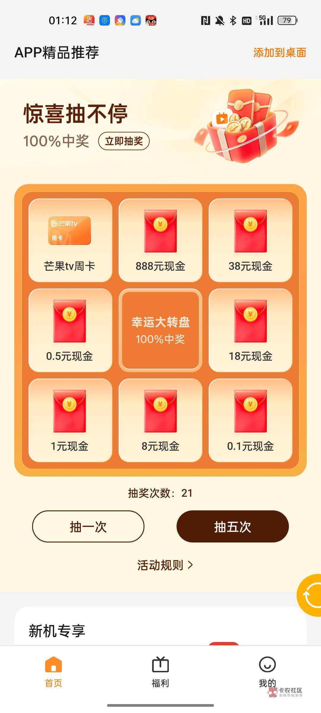 实测一天上限只能抽29次.块,黑麻了