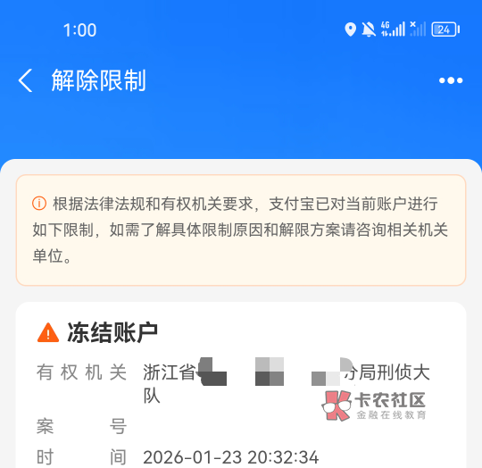 你这支付宝,浙江那里已经立案了。
