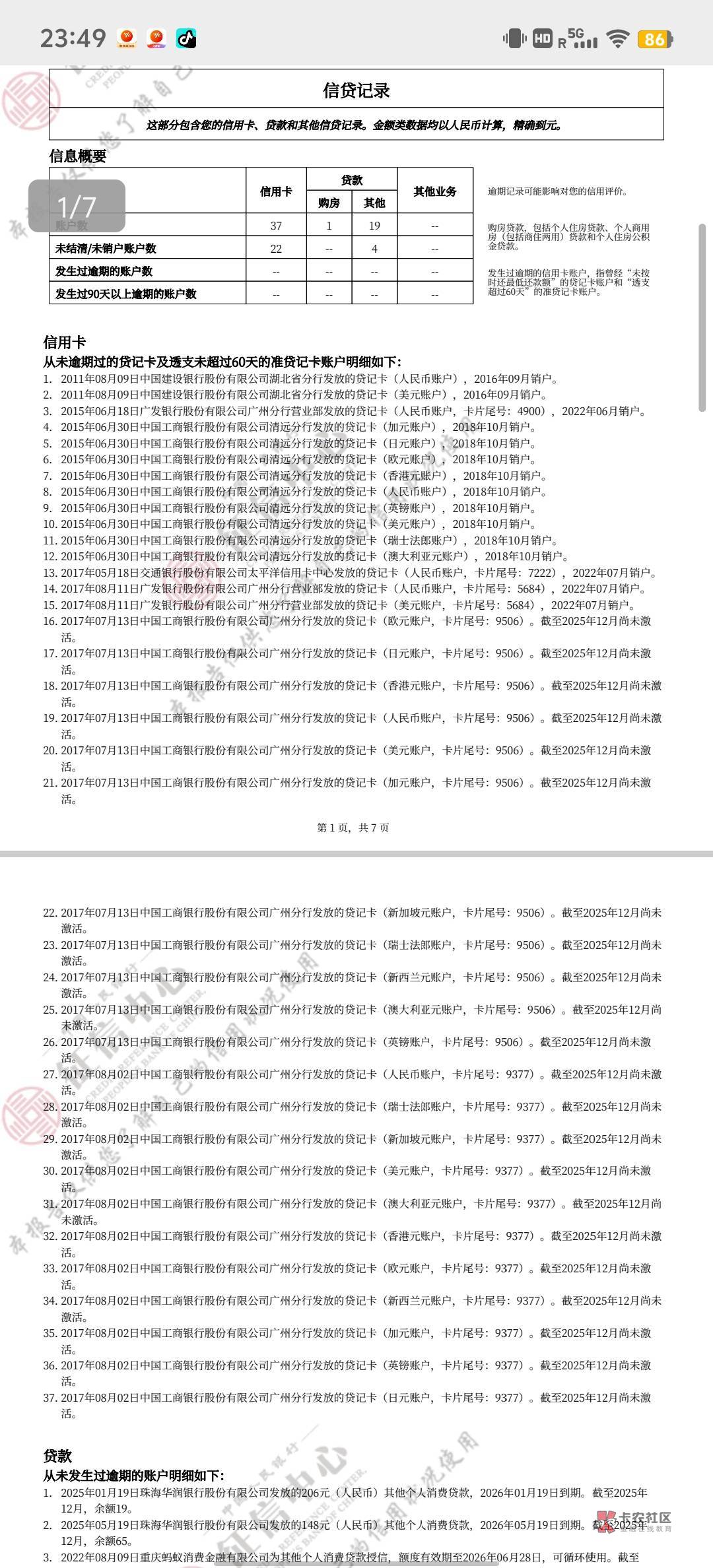为什么你征信上面信用卡的同一个账户能有那么多国外的账户,还是未激活的?你有没有打客服问一下,看那些能不能消除啊,你这个光账户在用的就22,虽然说是未激活