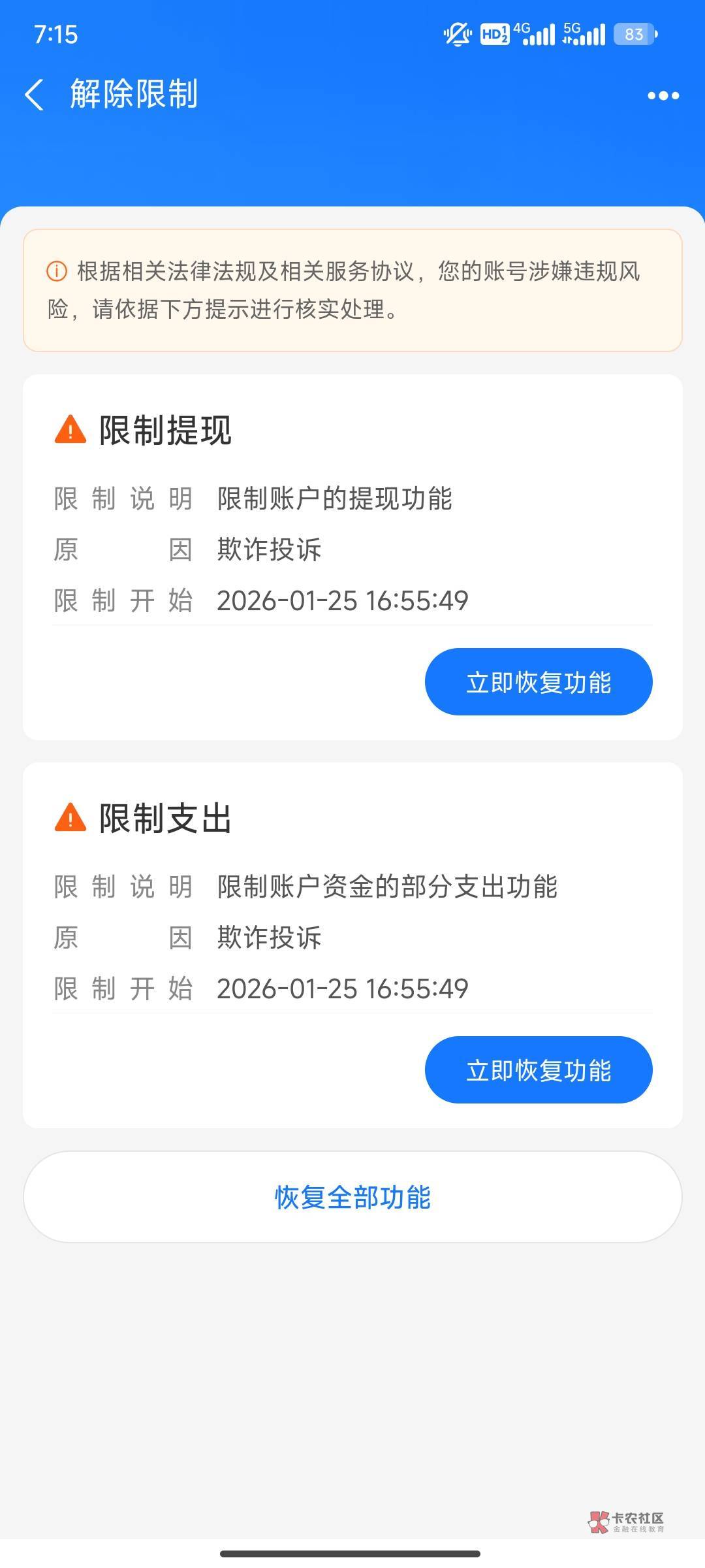 支付宝还不知道封几天呢,我等着用钱呢。