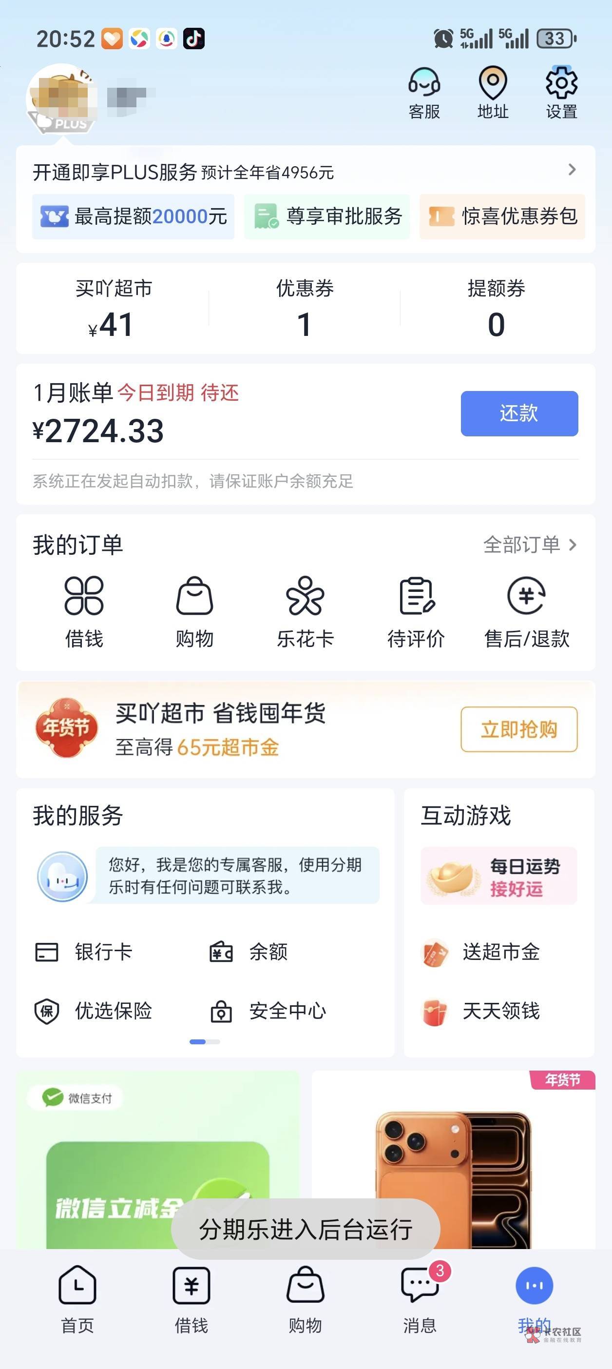 分期乐购物14000逾期半年了。天天叫我还本金