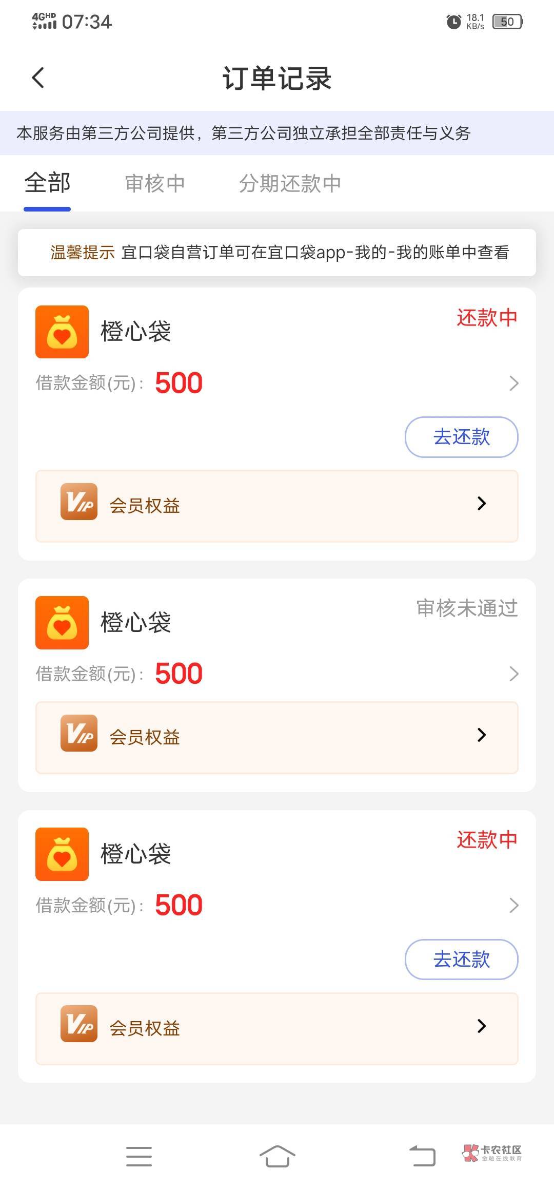 扣会员费了么,我昨天下的没扣会员,第二笔申请就秒拒。