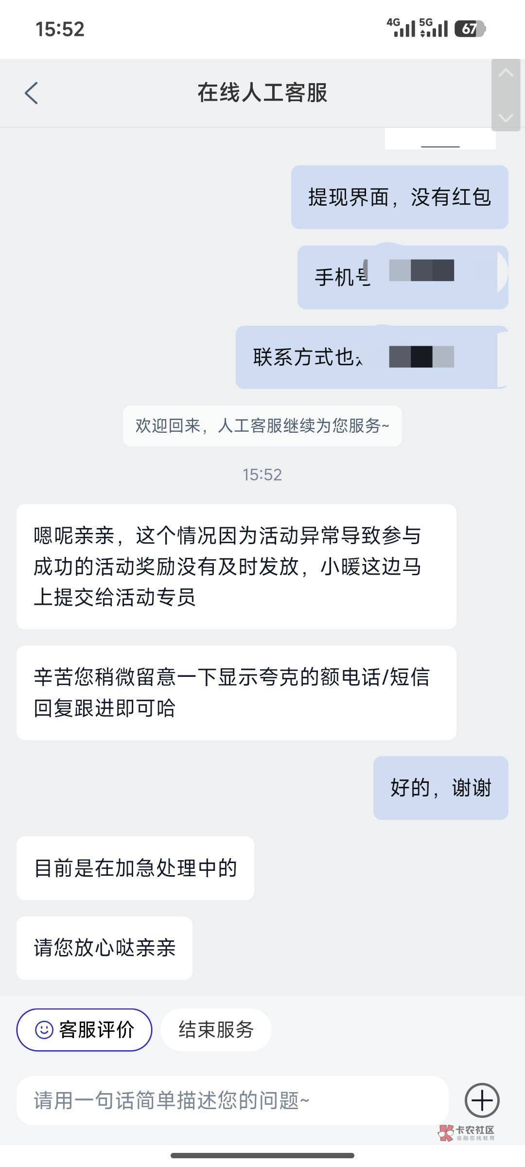 我也反馈了,让留意电话