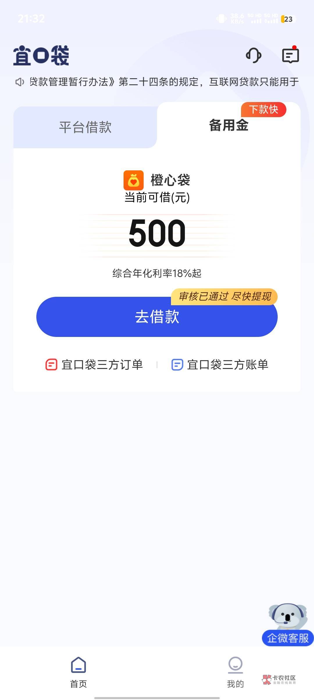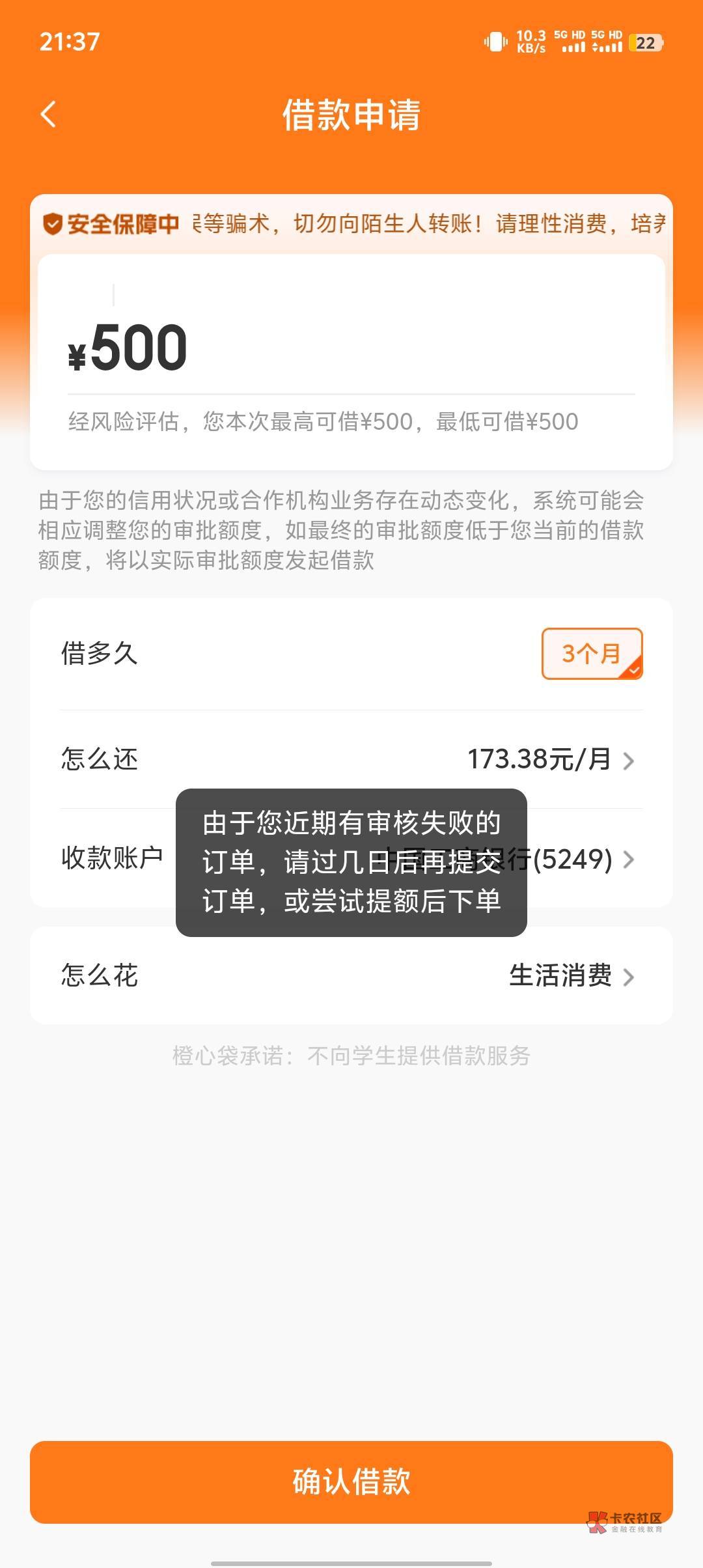 橙心贷显示500才可以,1000的都是无限秒拒,
