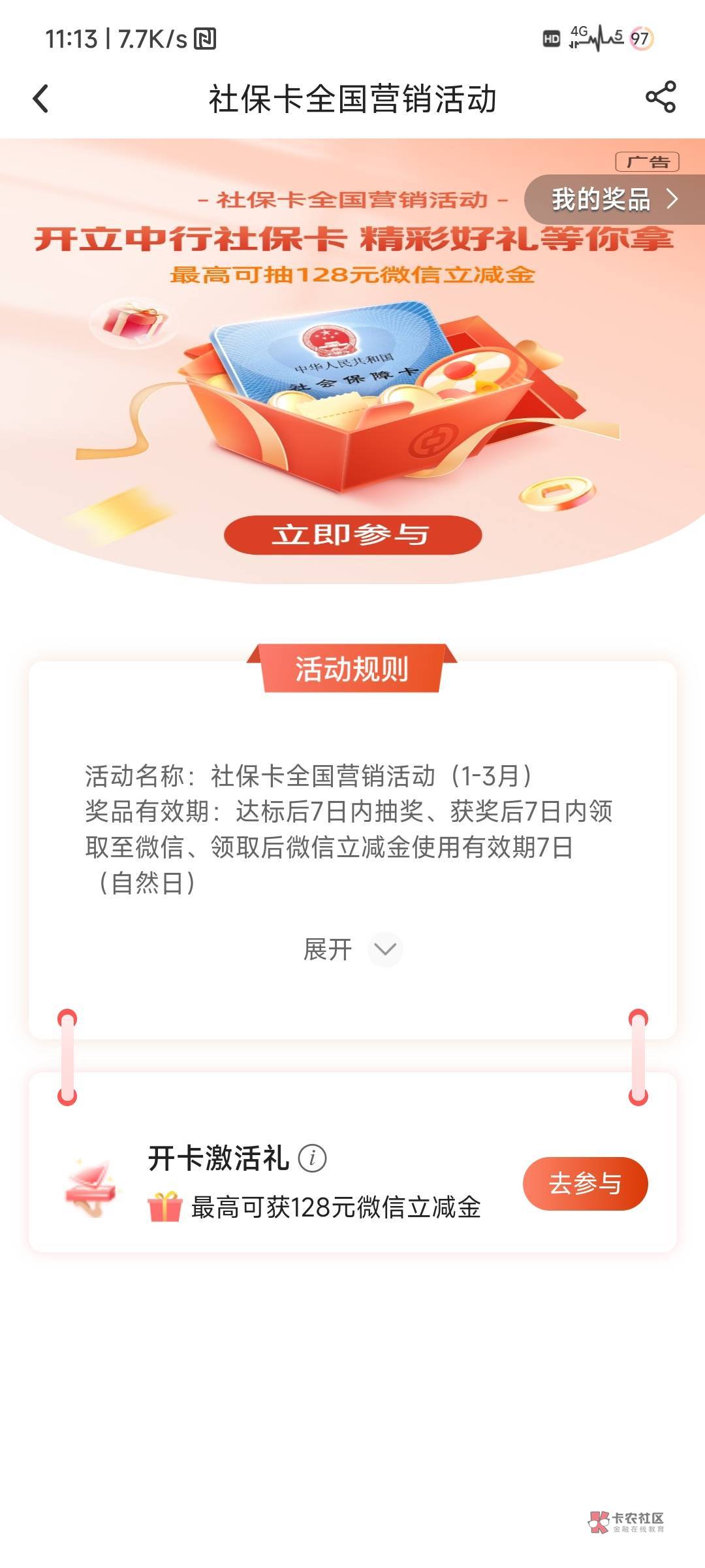 刷了下帖子又想起来中行宁波也可以开社保卡,宁波也有社保卡激活开卡激活礼,而且存管活动好像每年都会刷新也挺不错的,就是不知道能不能这边好不好激活,外地的还是中行第三张社保卡,怕吊难