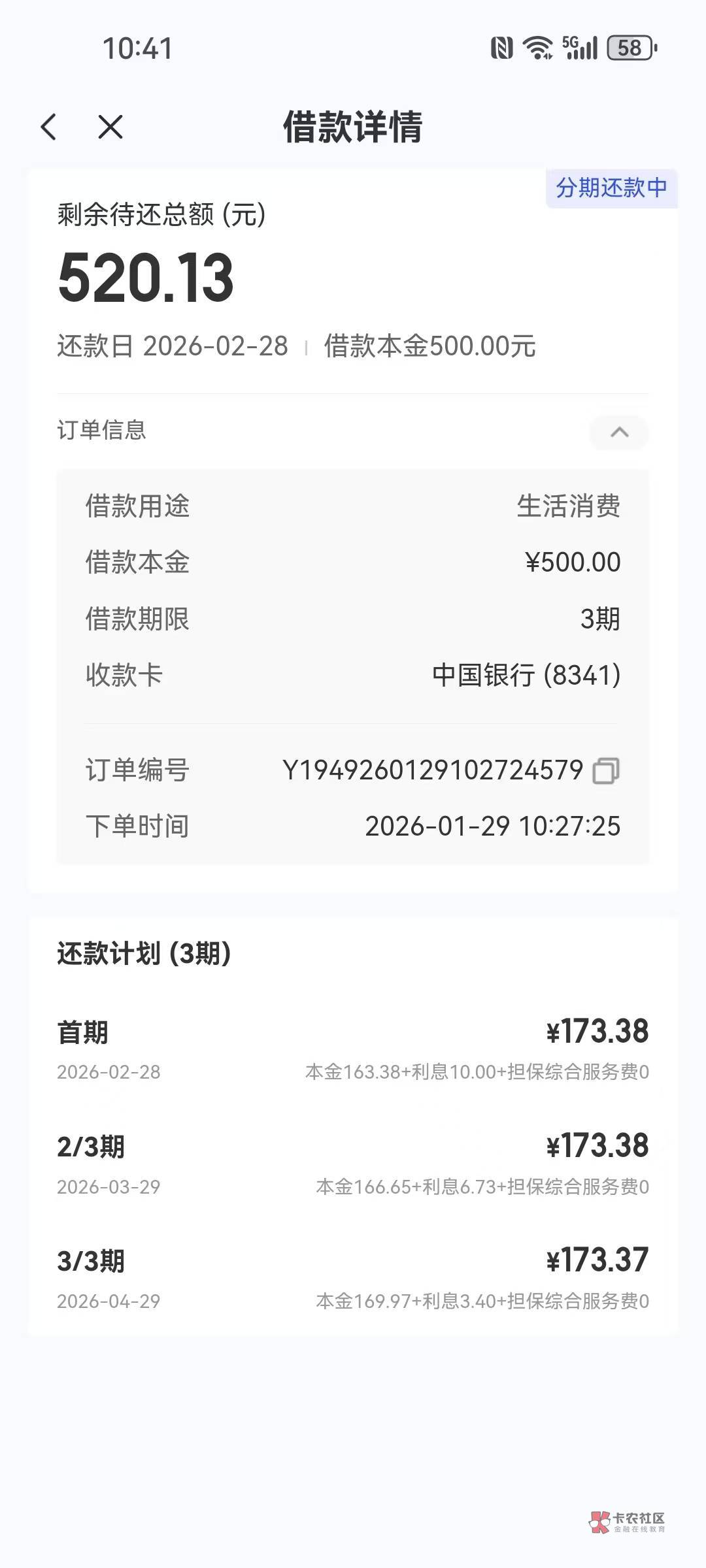 使用中,一笔没还过,最近一笔还有7天到还款日