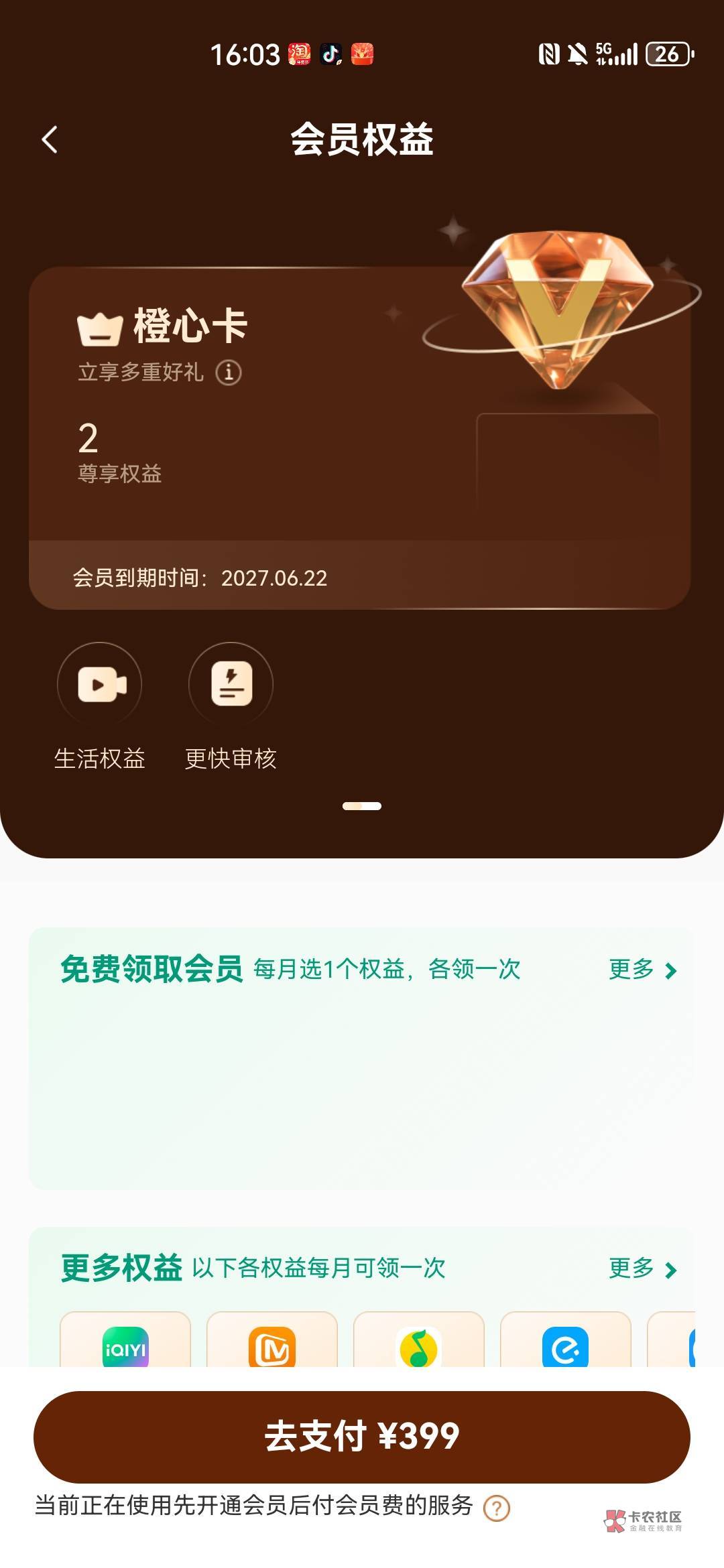 那个56昨天已经给我扣了,现在去会员页面主动支付399了
