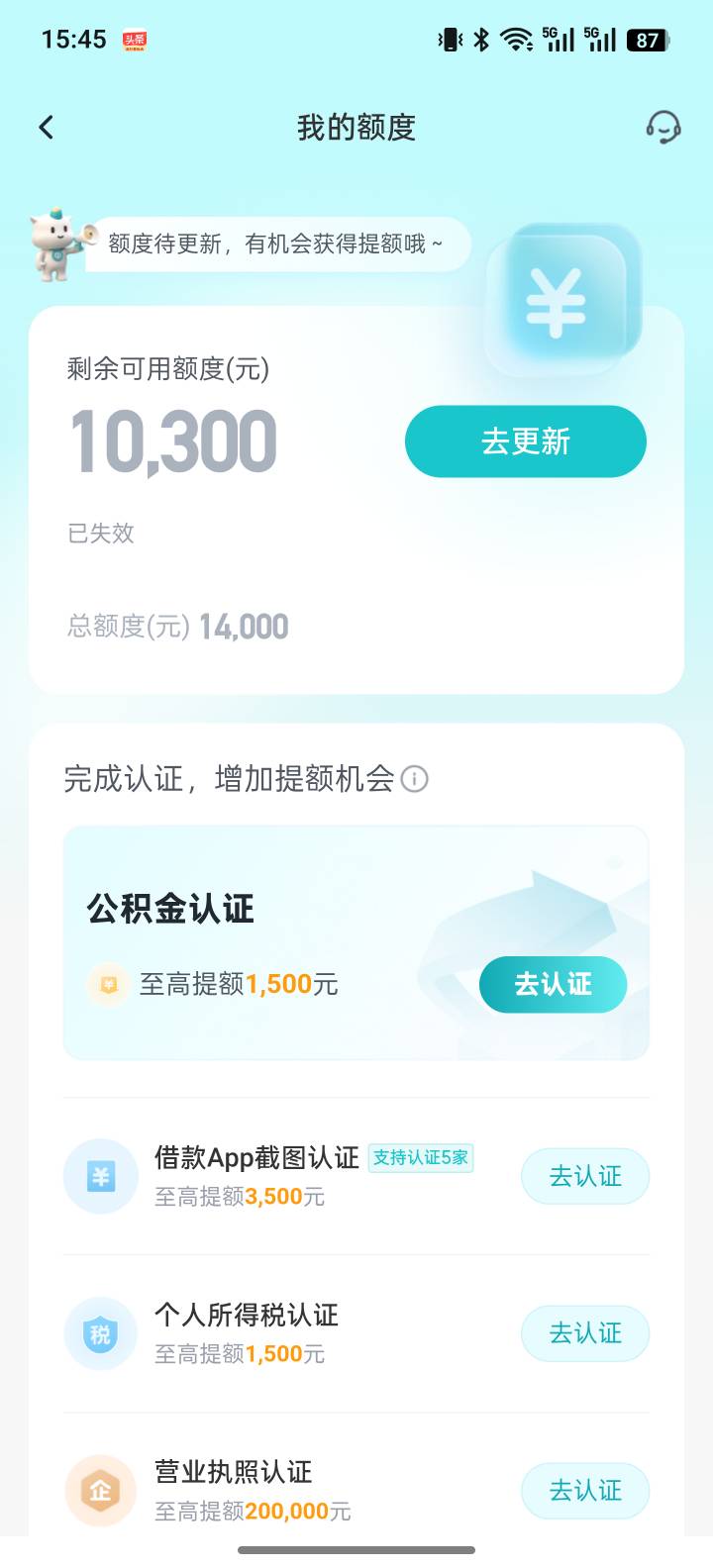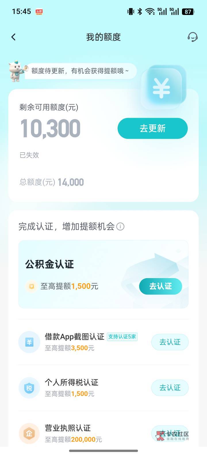 我之前也是这样的,后面出的3000临时,今天变成5000,你看我前面天天申请