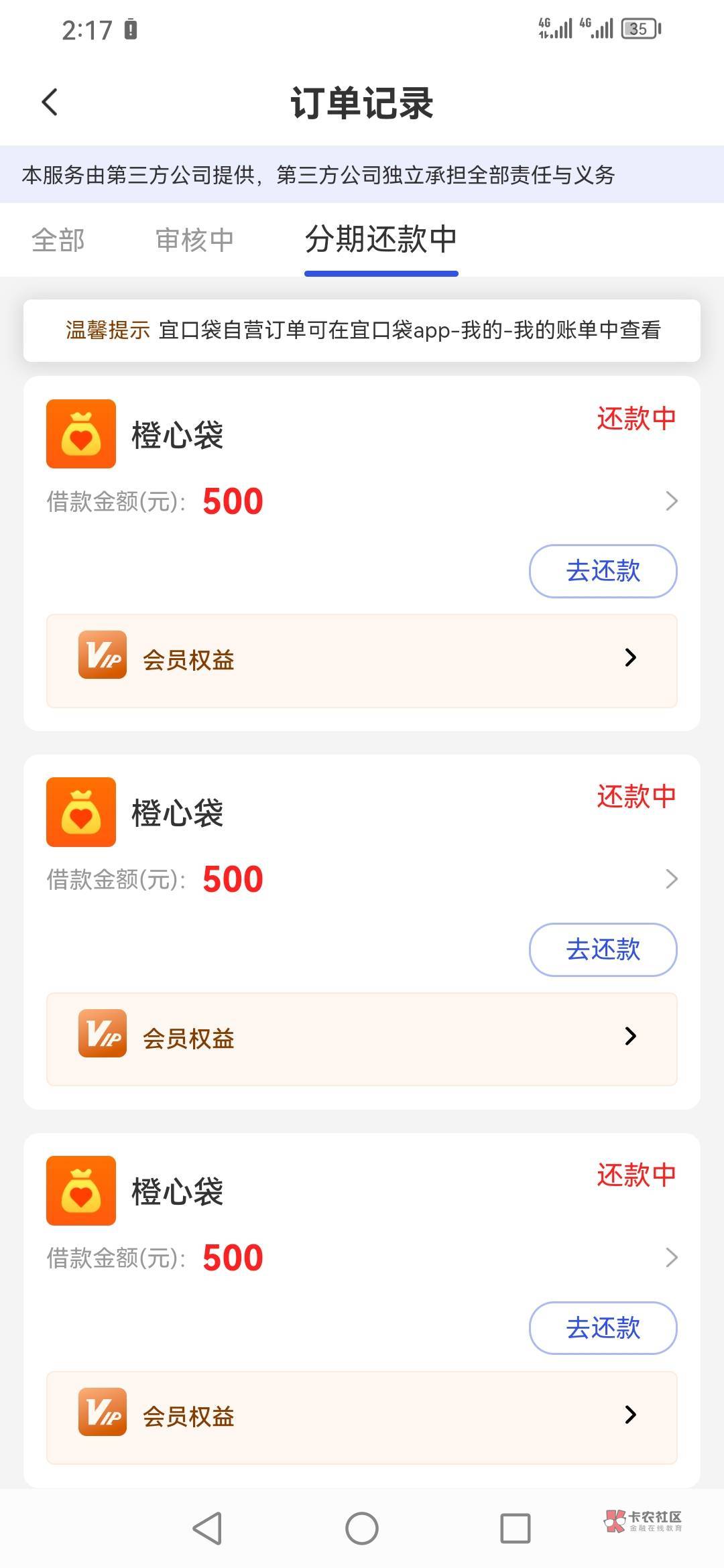 我没还也没扣会员,只下了2笔500借款