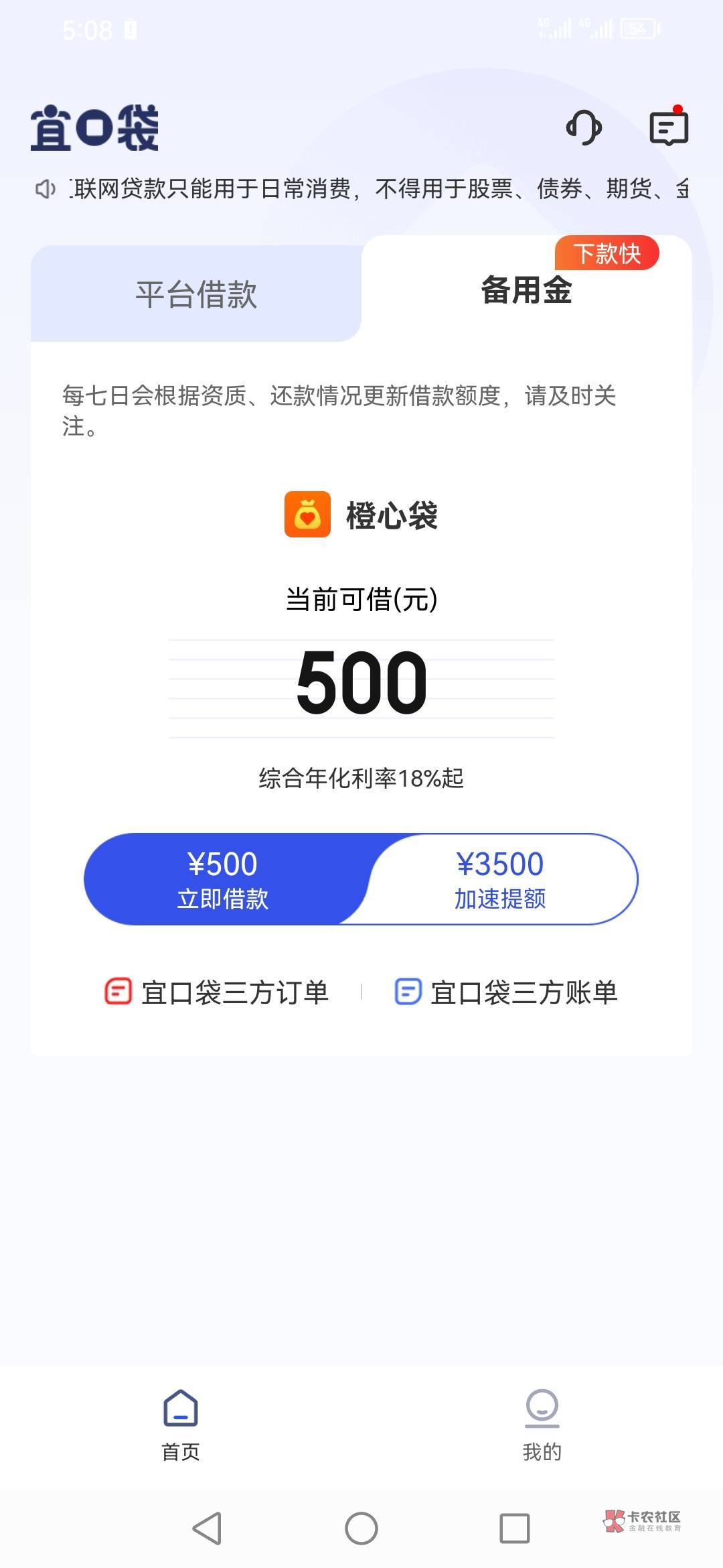等一个星期就有了 会出399提升额度3000的界面 固定额度那里显示0