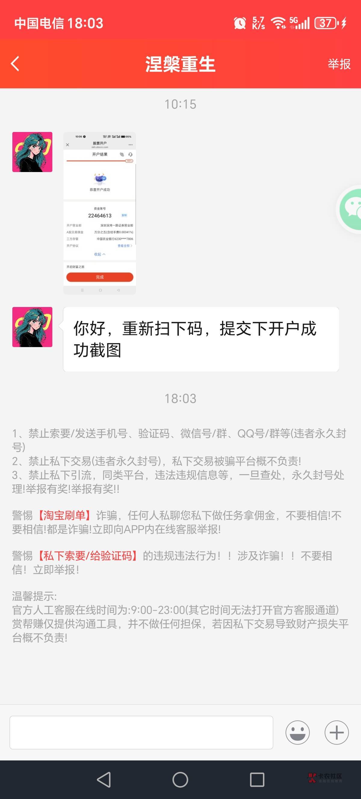 今天提交的,给我驳回了,叫我重新截图开户成功截图