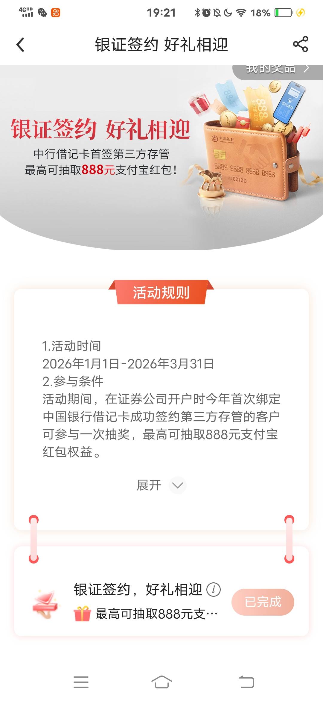 中行内蒙古第三方存管50元微信立减金活动