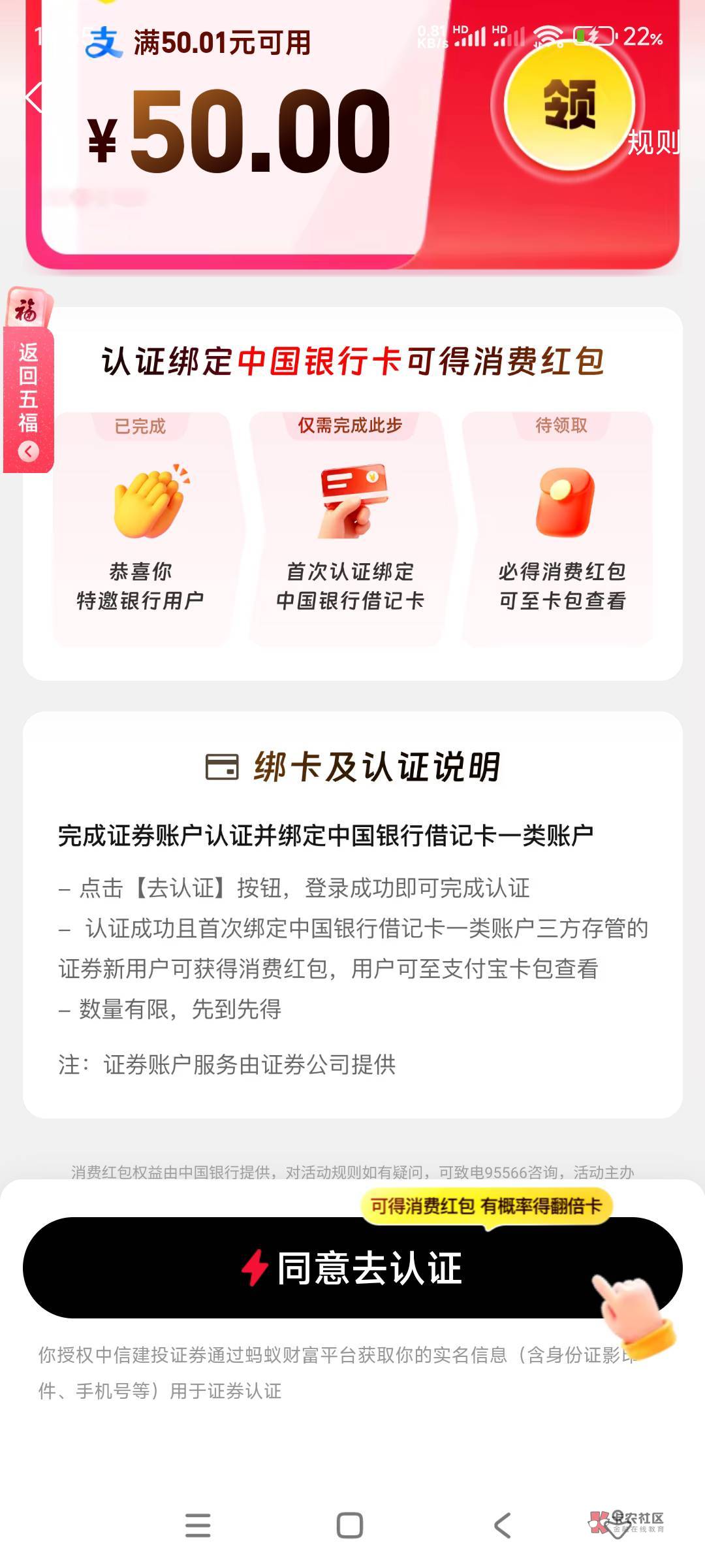 点进去就是开户了,出资金号就变成50块红包