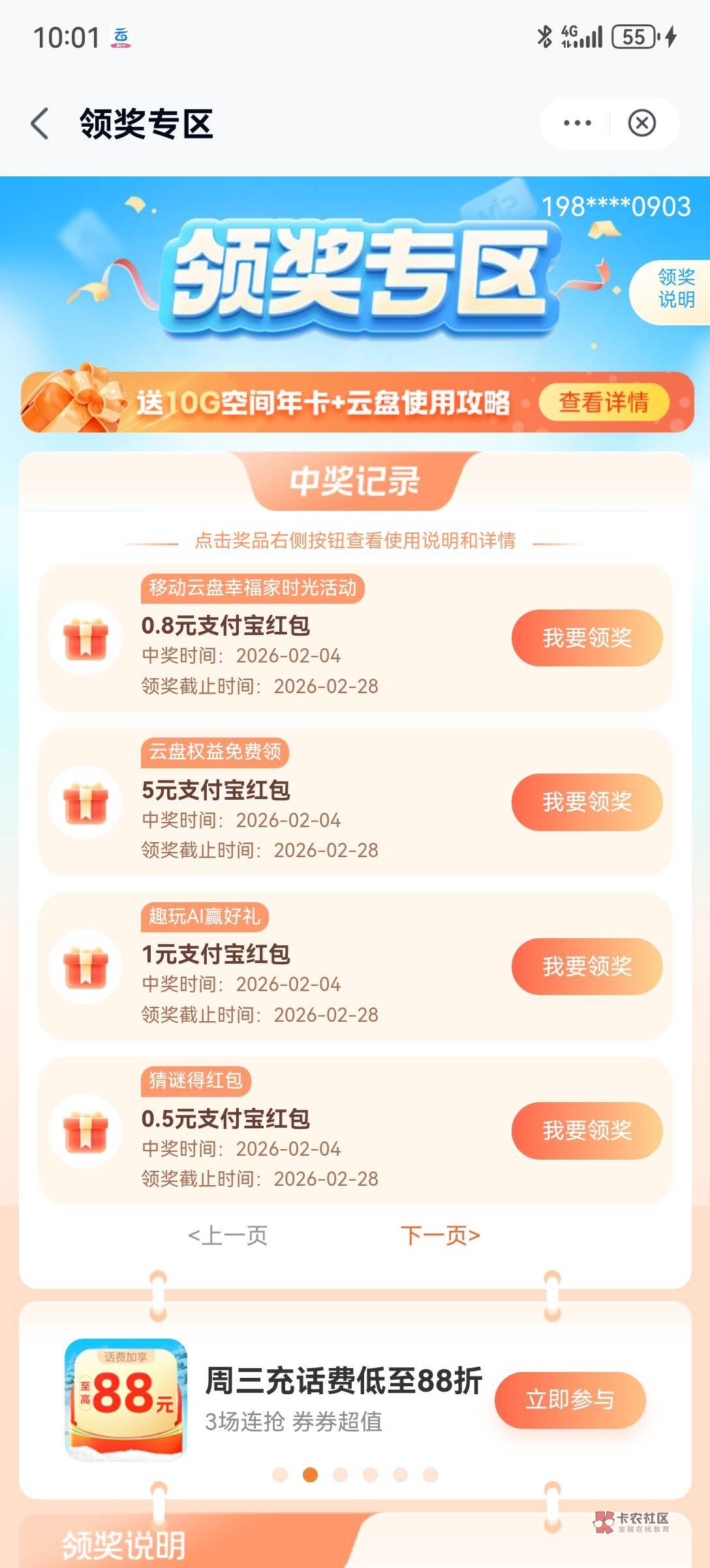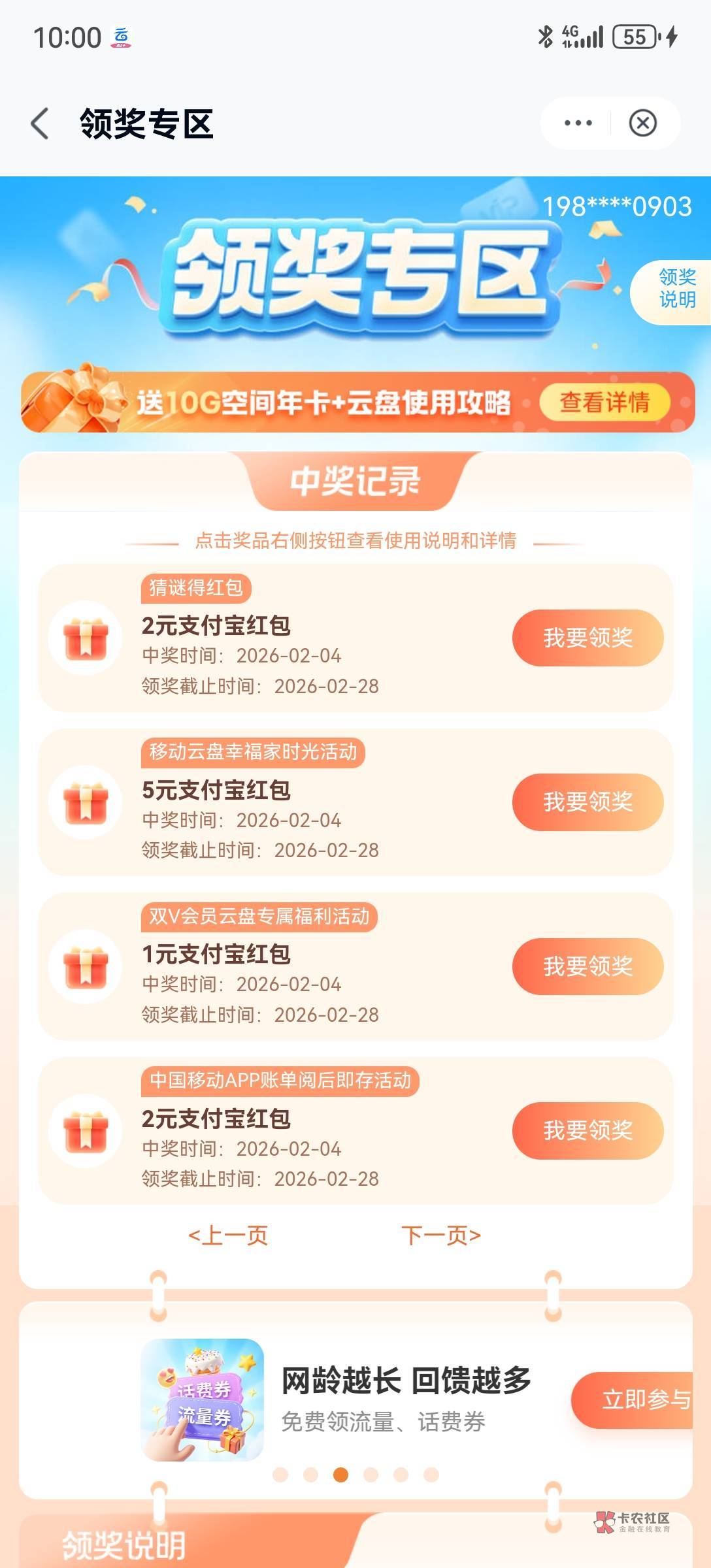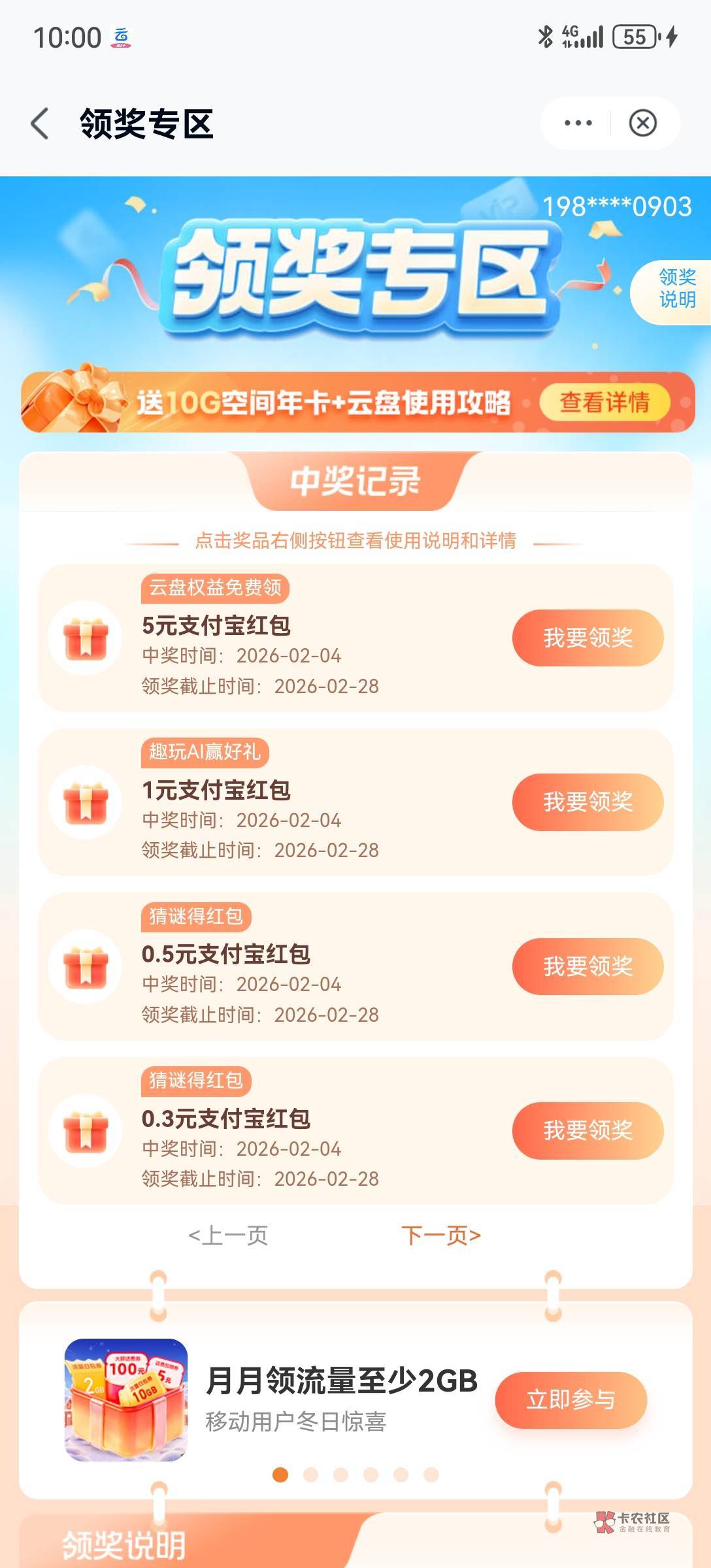 全球通用户移动云盘可以领5,已经领完了