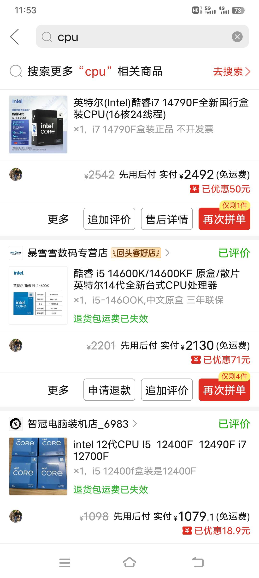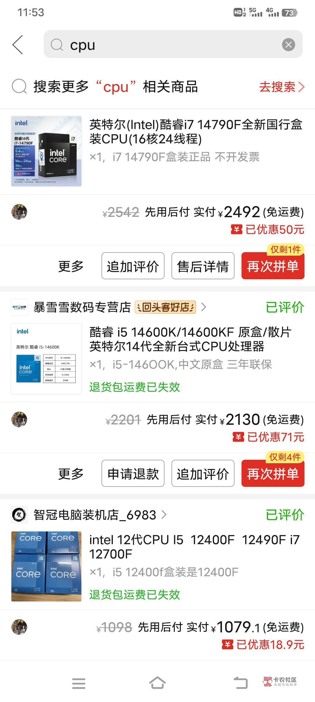 多吗,我拼多多最高的时候4000,下了两单电脑cpu