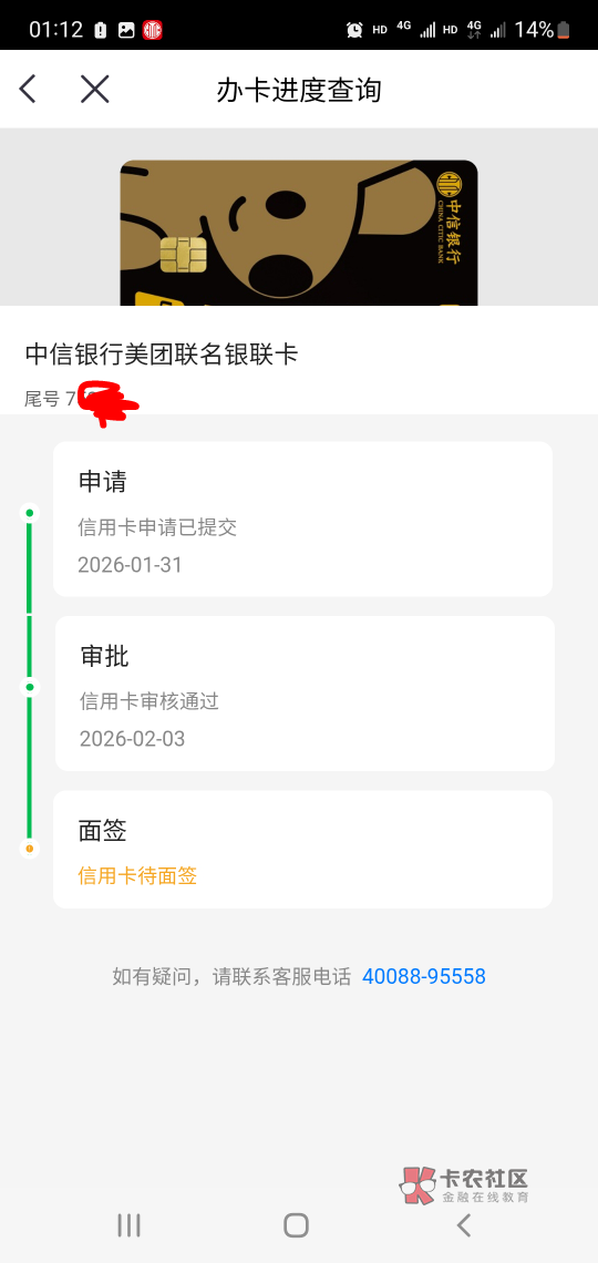 ,信用卡都要去银行面签过后才可以的,面签是最后一步好不汪汪汪 发表于 2026-02-05 01:28