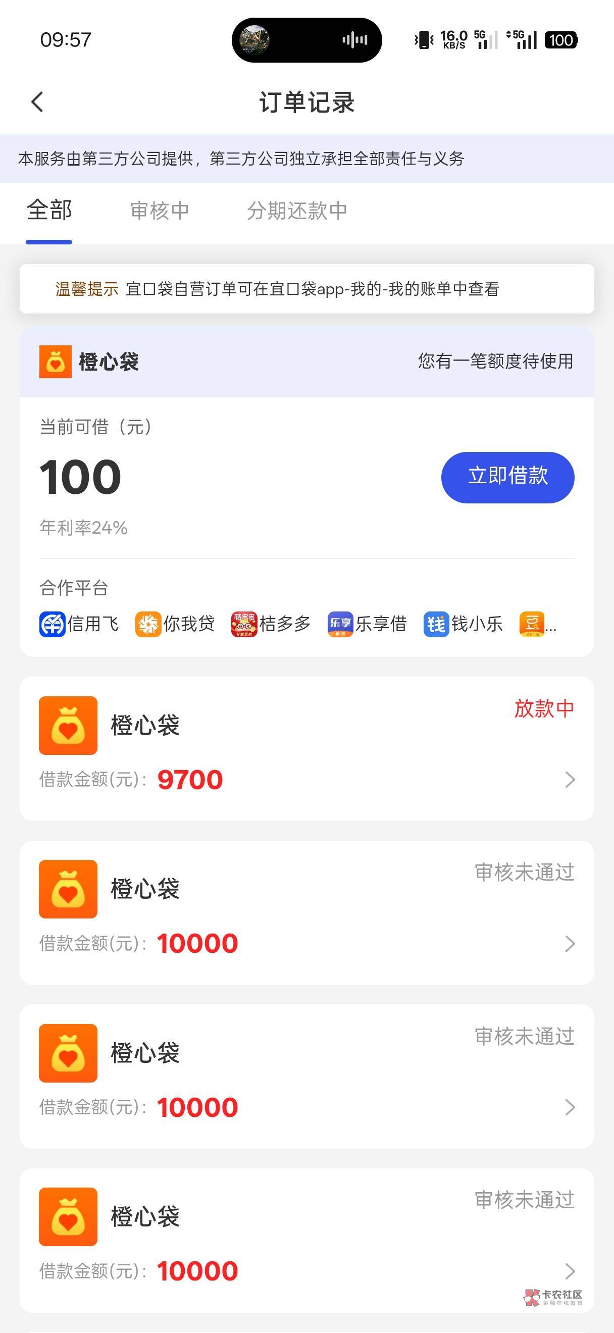 不是 是9700那笔昨天申请的 上面那100估计是bug显示