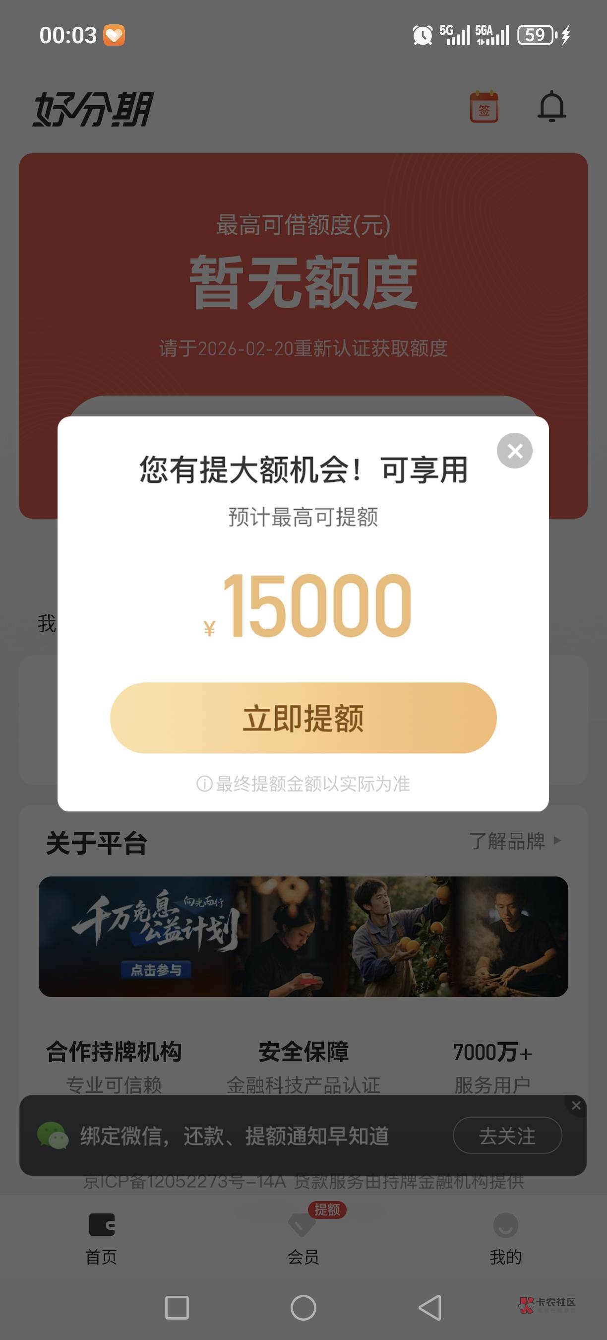 好分期没额度。购买这个会员会不会出额度,谁知道