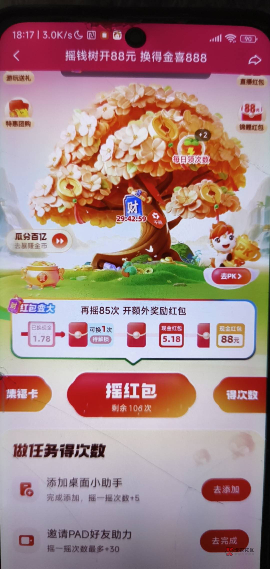 今天5.18,摇到7.7,然后财神膨胀到36,全看运气,不是一定66的,你这黑号估计也危险
