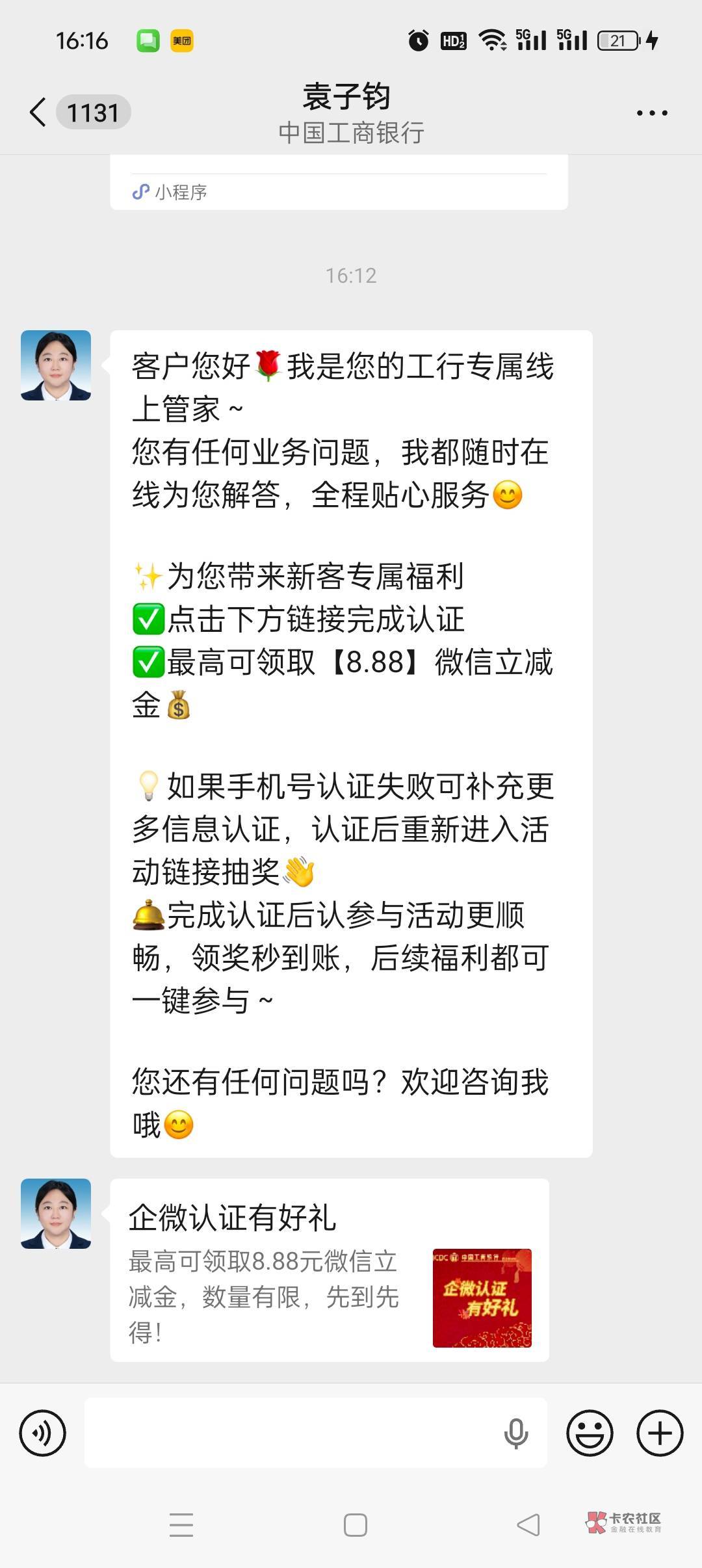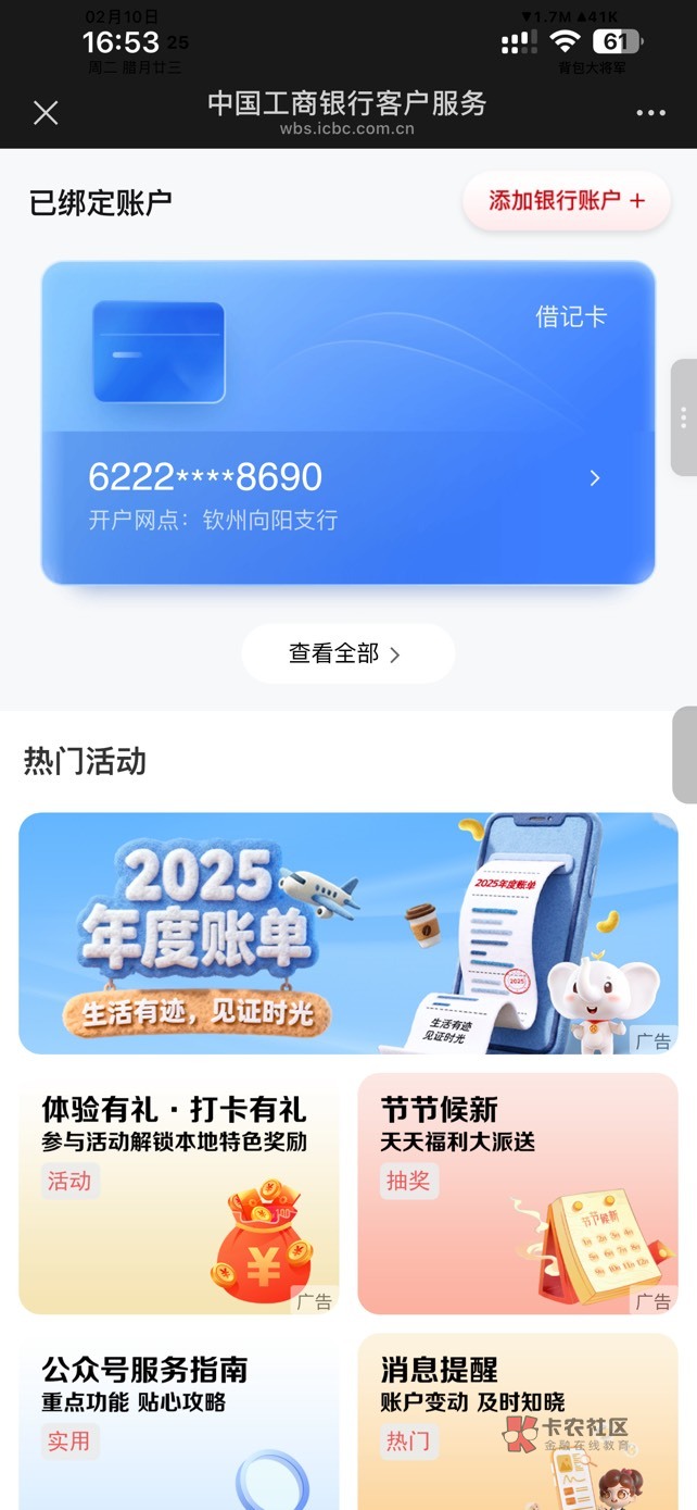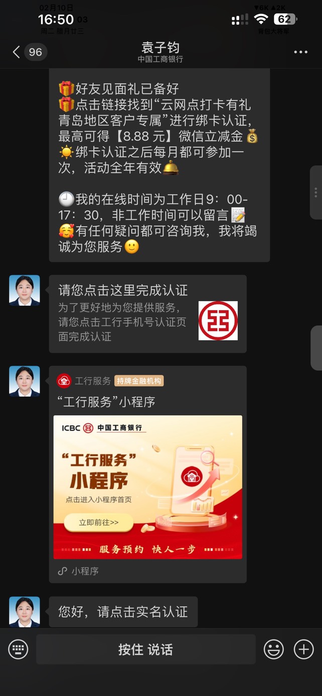 去中国工商银行客户服务公众号绑卡实名再点开看看
