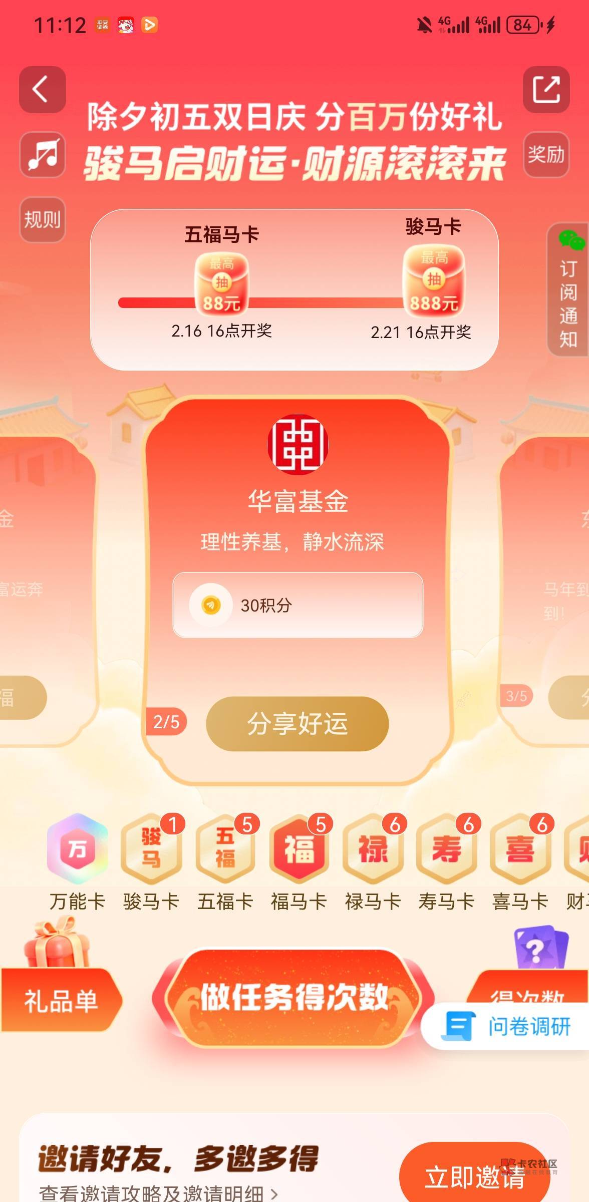 五张五福卡合成一张骏马卡,五张不同的普通卡合成一张五福卡