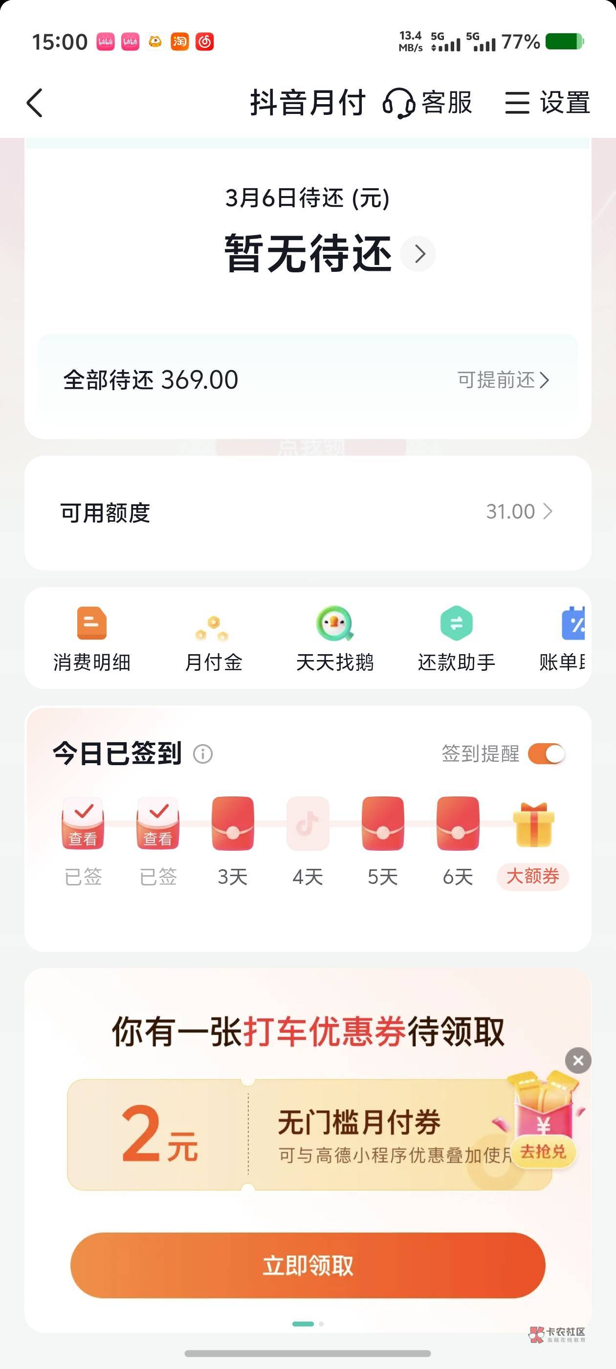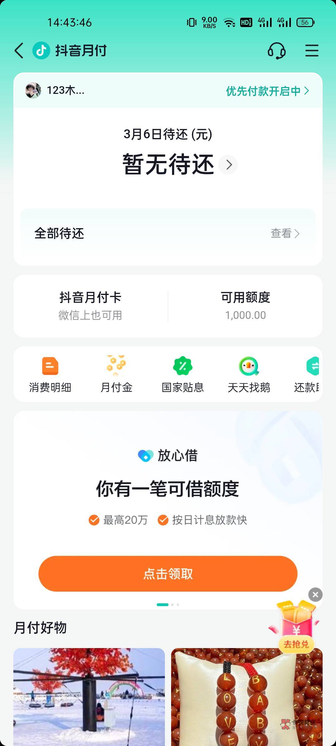 抖音月付卡,点啊倒是