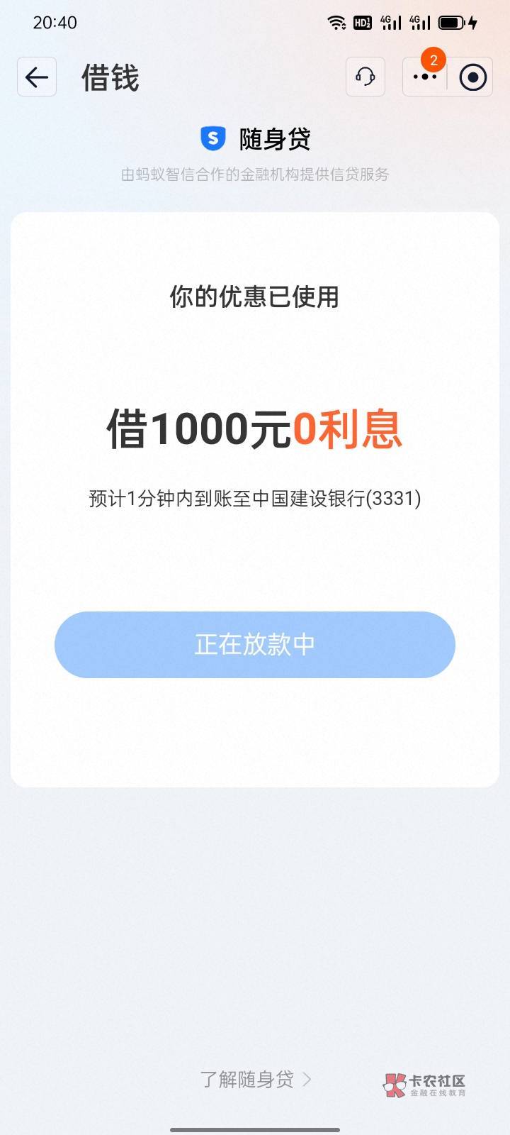 哈哈看我铁子不一会就放款失败