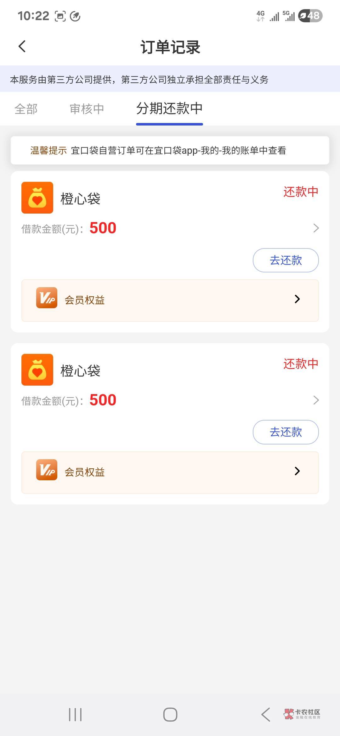 不用下载,重新登陆宜口袋,再次申请第三方,就会出橙心贷