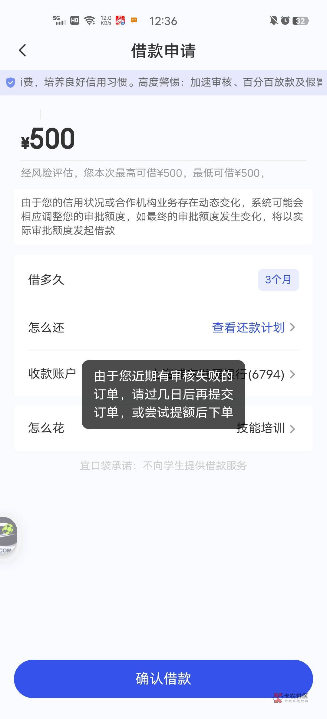 别逗 我两天了。一点就是说我有失败订单。等过几日或者提升额度了再试