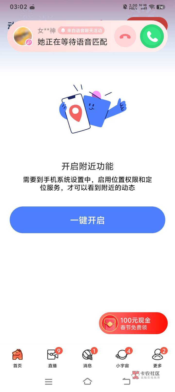 我看你的页面咱俩不一样的地方就是我没开附近人 你开了 你问下客服