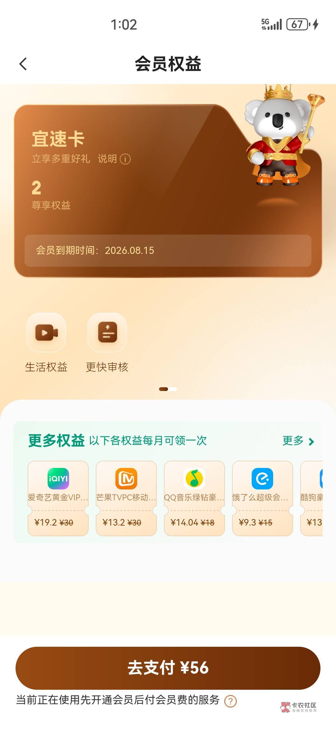 我也是审核中要不要开通56会员没有先用后付