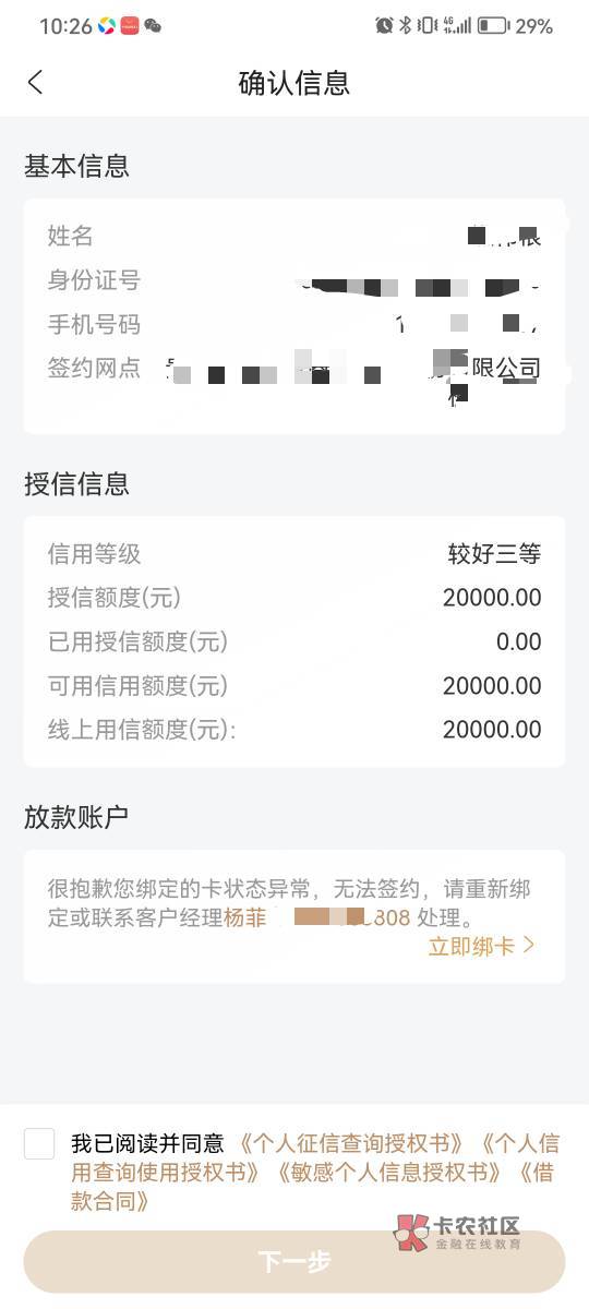 签约也不一定能下,我是签约了都过不了,11000额度