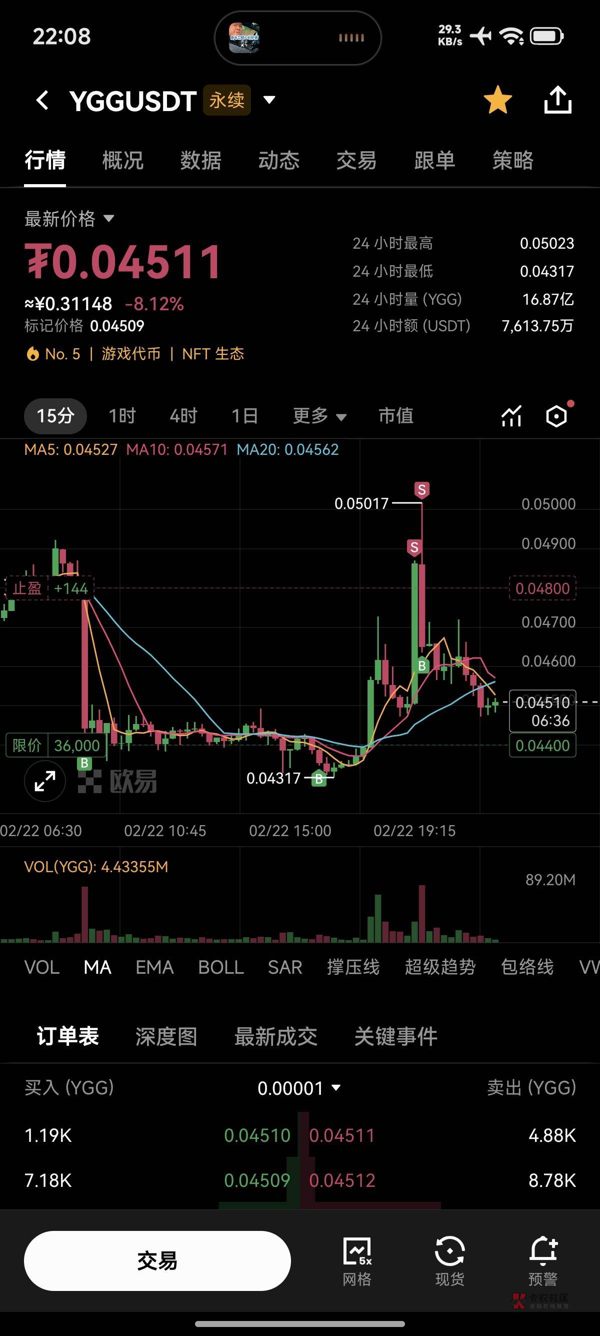 两个大阴线,两三个小时内上不了0.048,