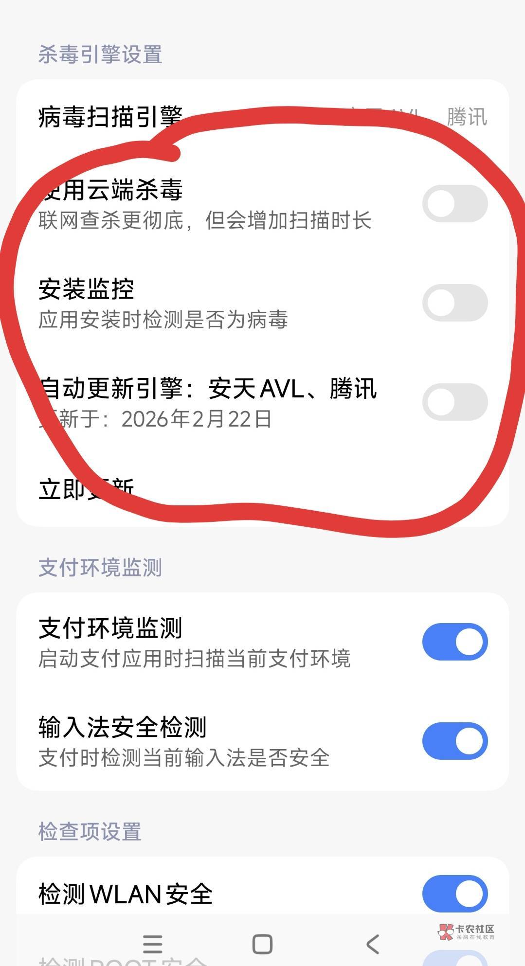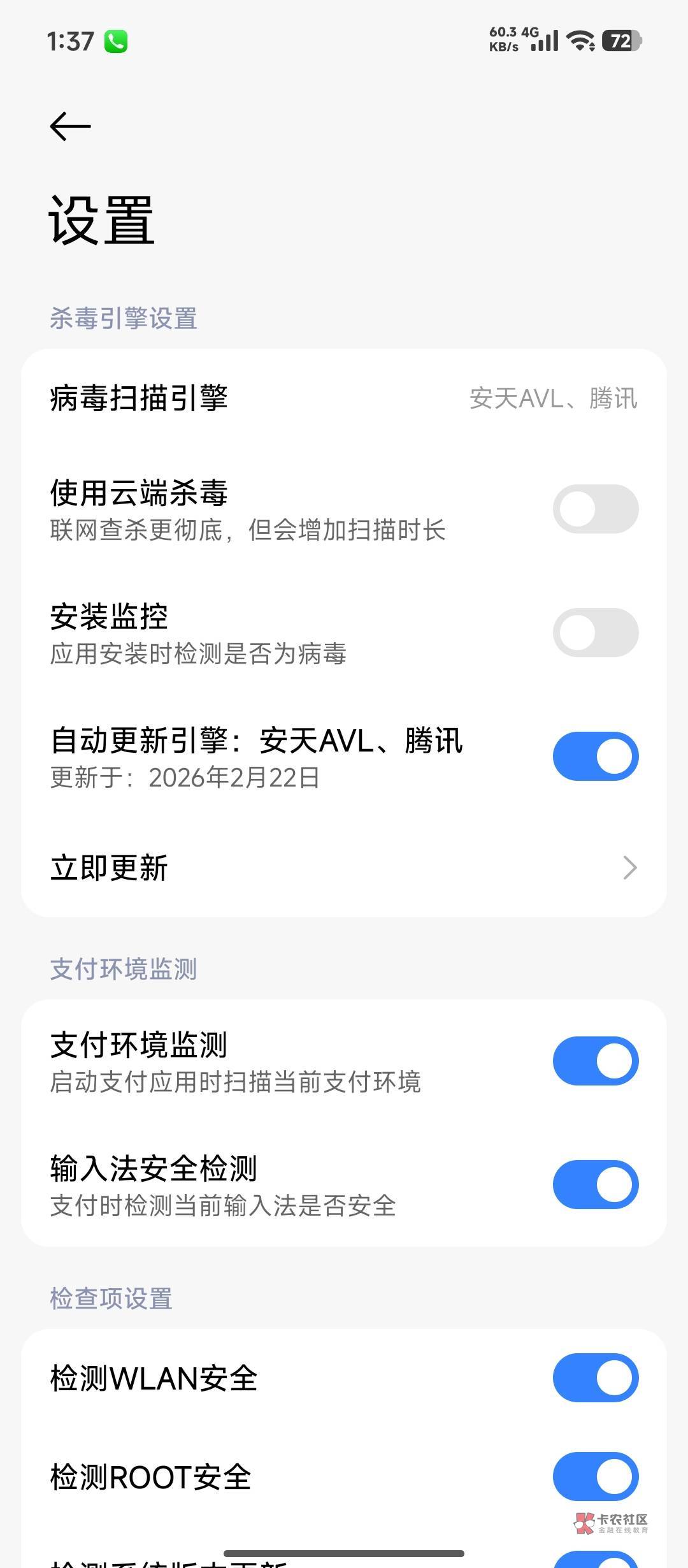 手机管家 病毒扫描 设置 病毒监控 关掉