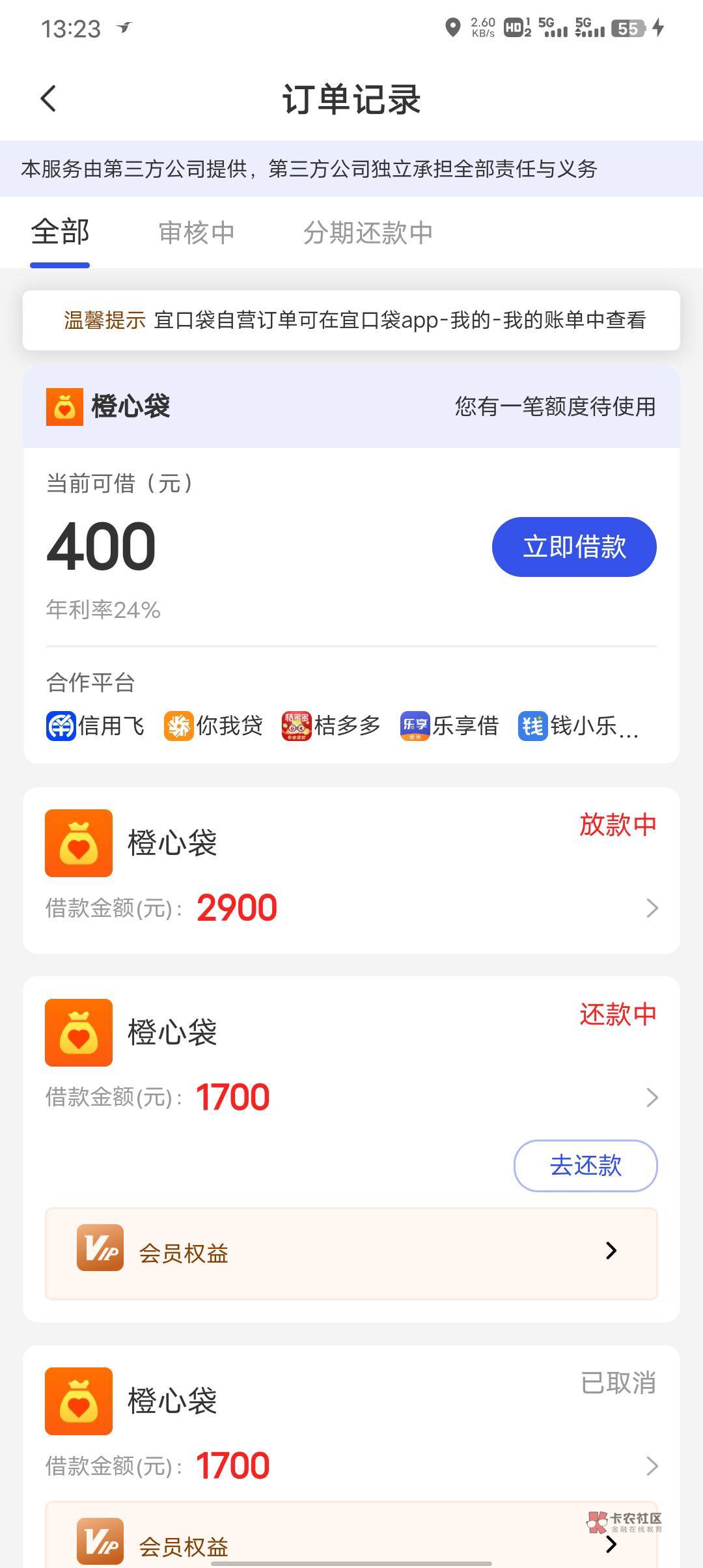 没有橙心贷本体嘛 你这第三方在宜口袋不能解决