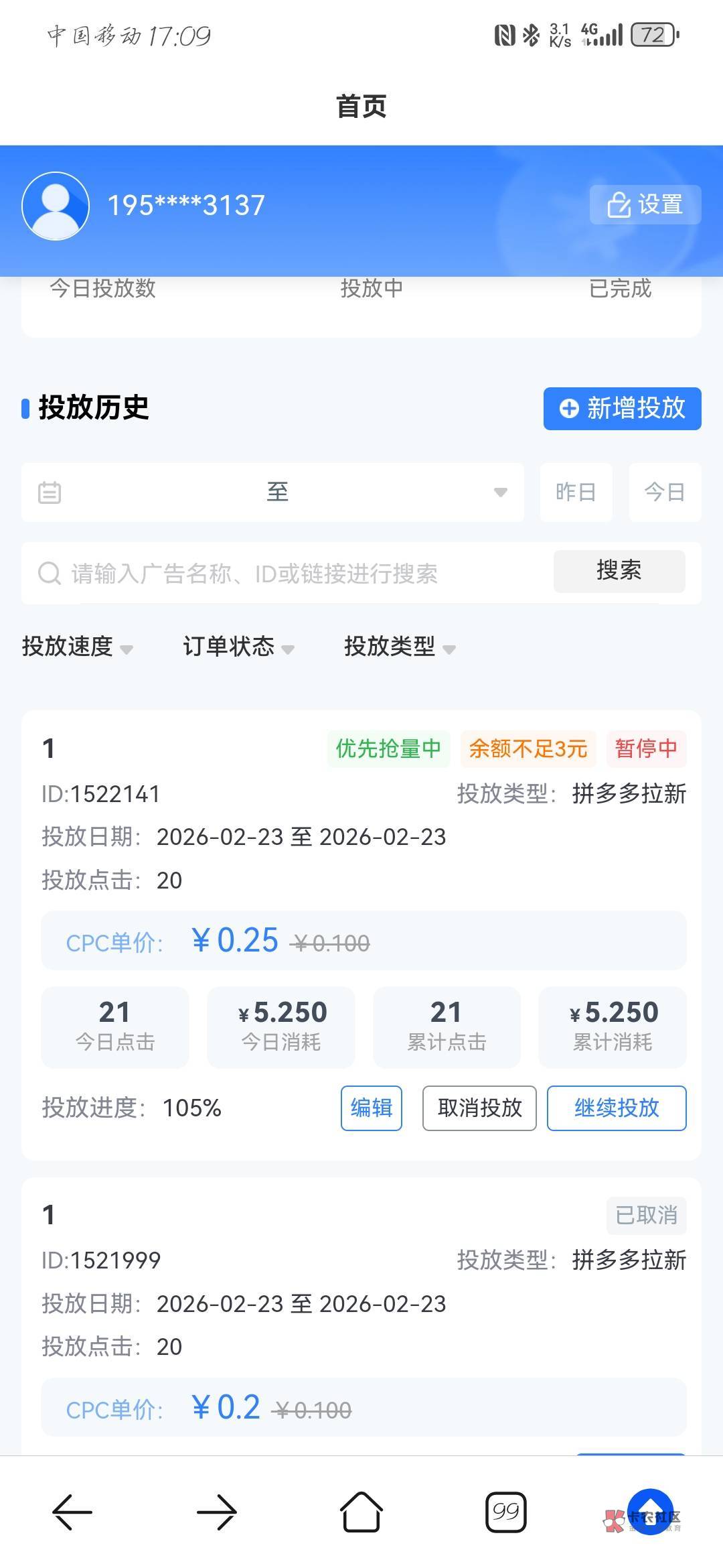 怎么投放都暂停了,拼多多没有次数呢