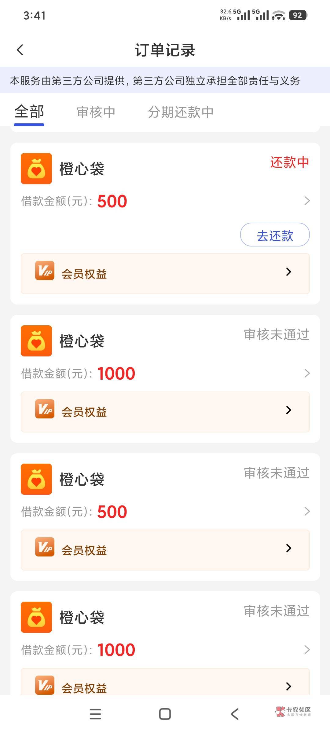 说明你没呆账黑户