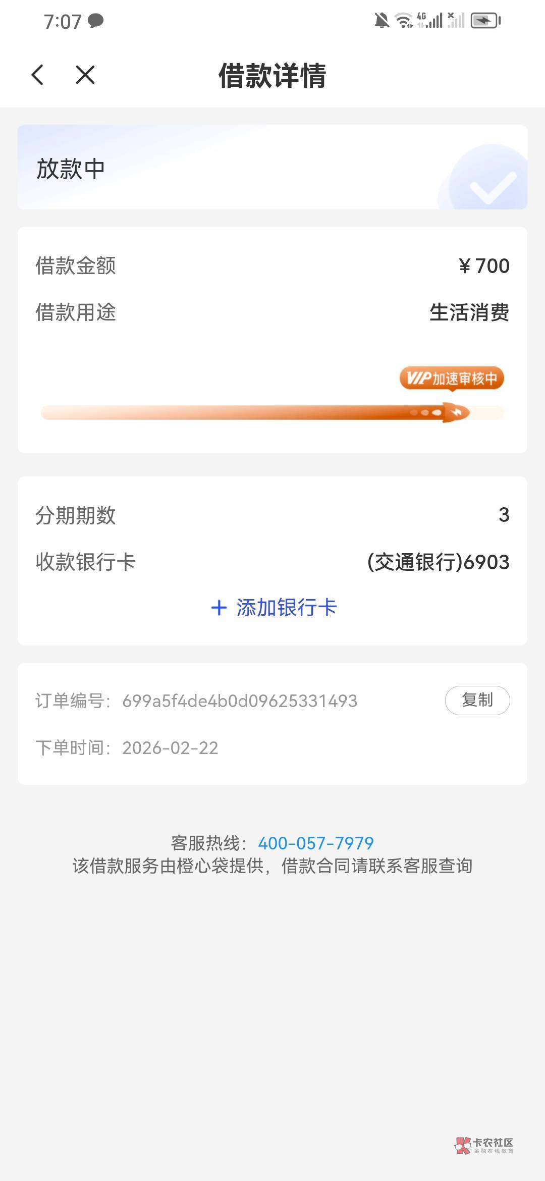 我去退会员费说我这个地区什么异常,宜口袋本体我下了两次一个先用后付。一次自己付的,橙心贷是在宜口袋里面匹配下的。去退会员费也是一样说什么地区异常,去黑猫投诉一直叫我等