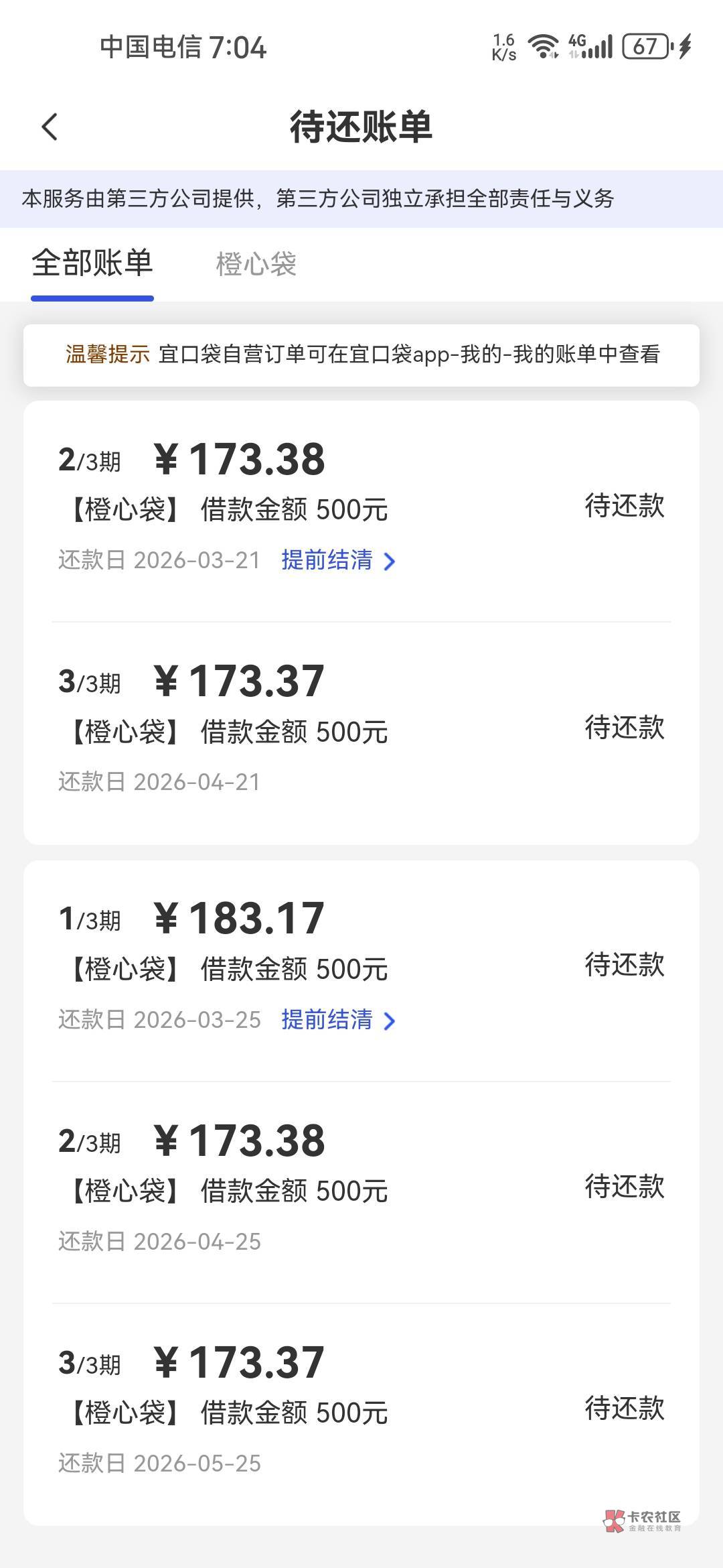 我也是,我今天第一期账单170多早上先还了第一期,结果回头下款,连续扣三次