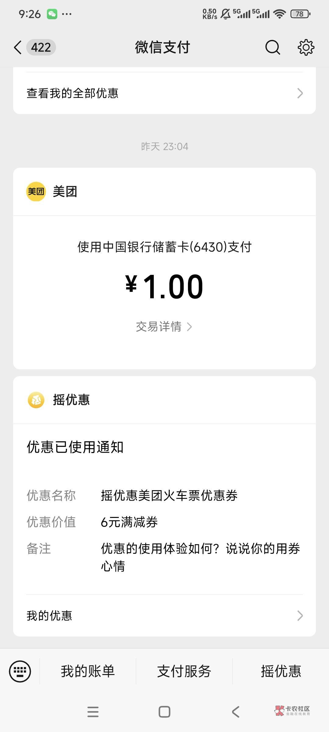 11块的携程减5,用抖音支付还减2,总共只要4块