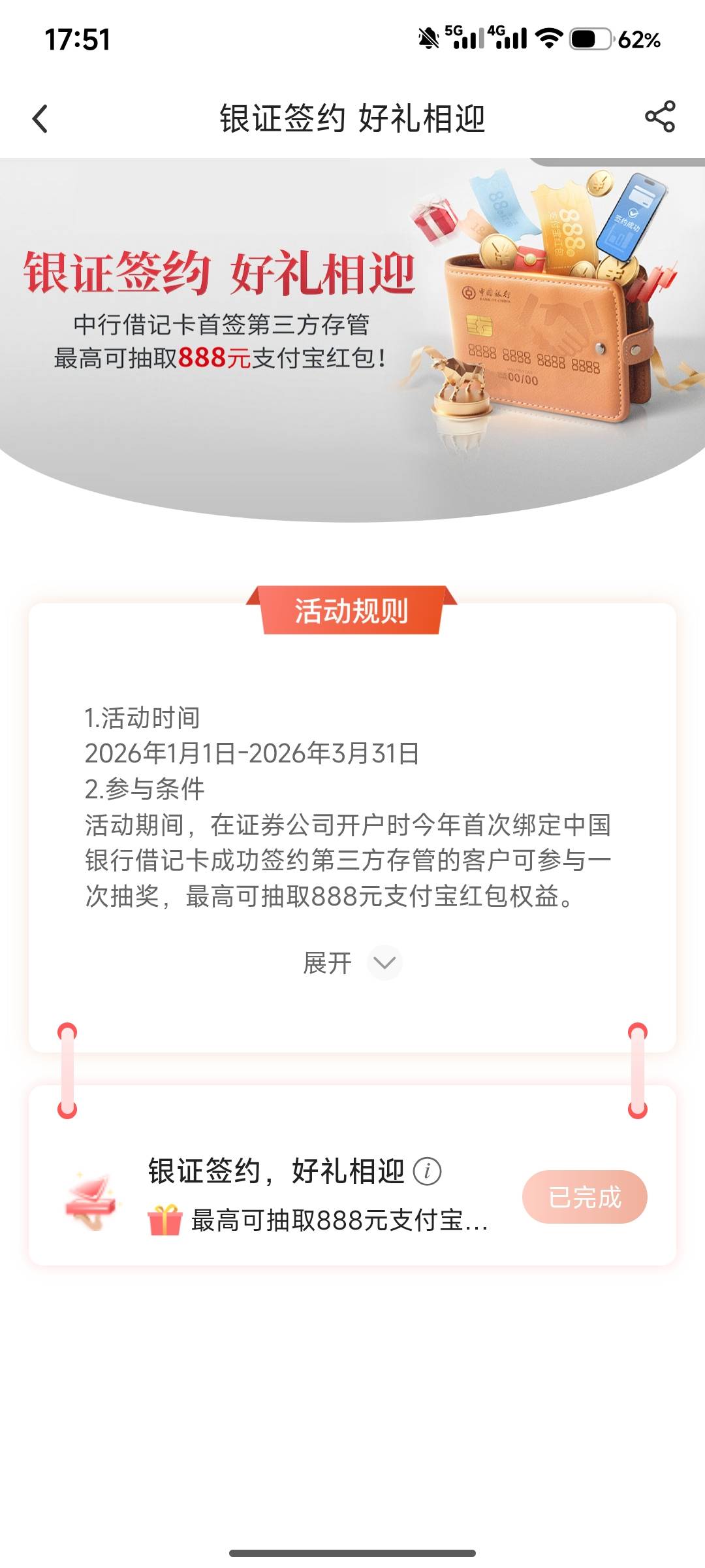 老大哥总 发表于 2026-02-26 13:12 老哥,我也开户成功了,但是怎么参与活动啊,去中行app活动页面,显示还是让去签约