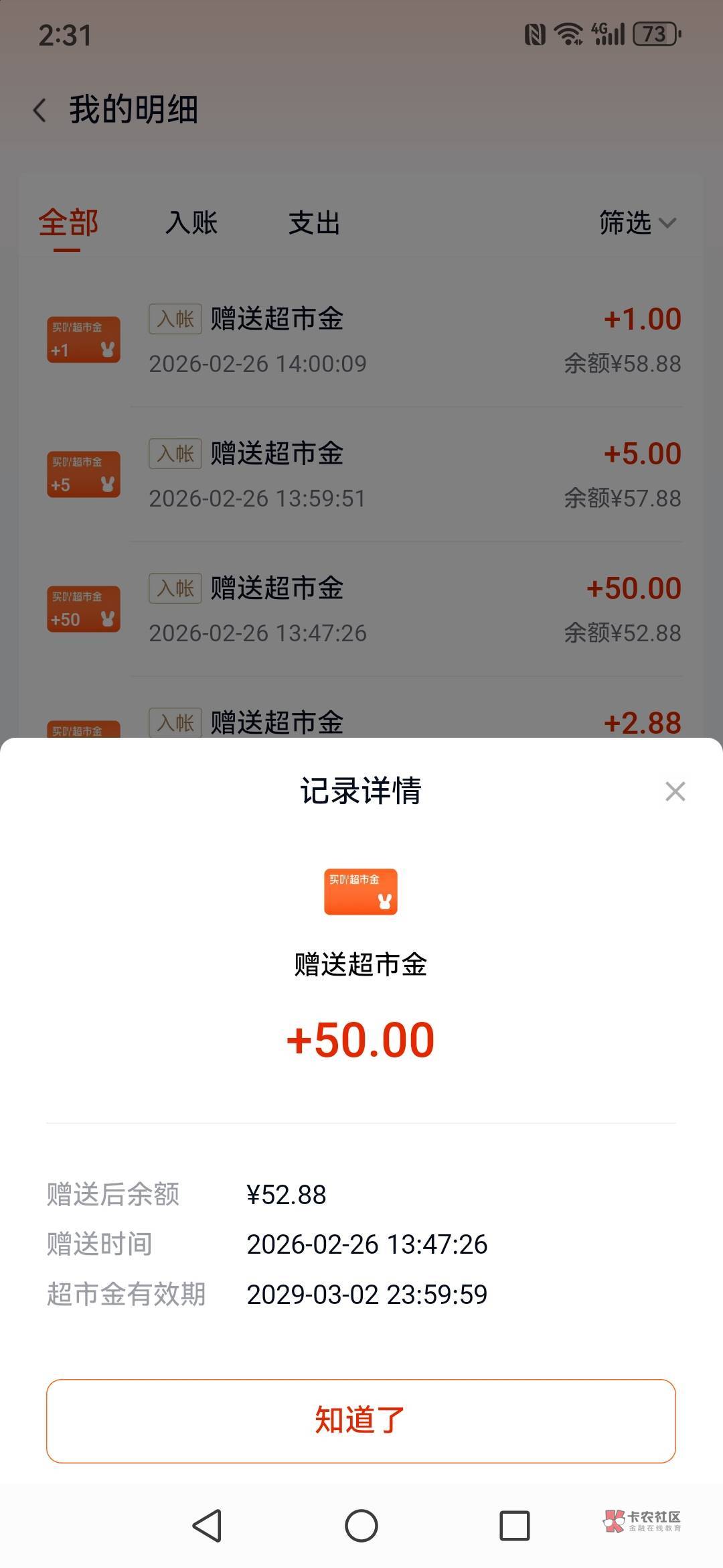 领了超市卡还能全额退啊