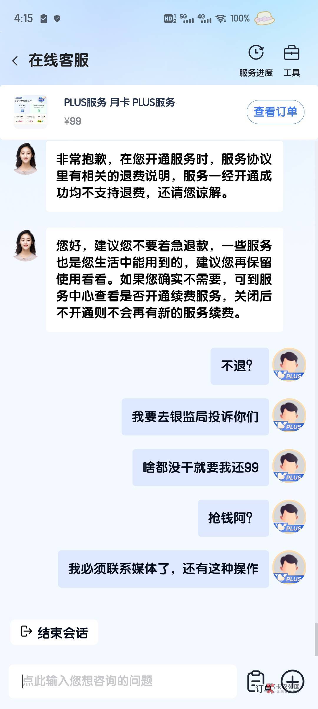 我说举报他才给退