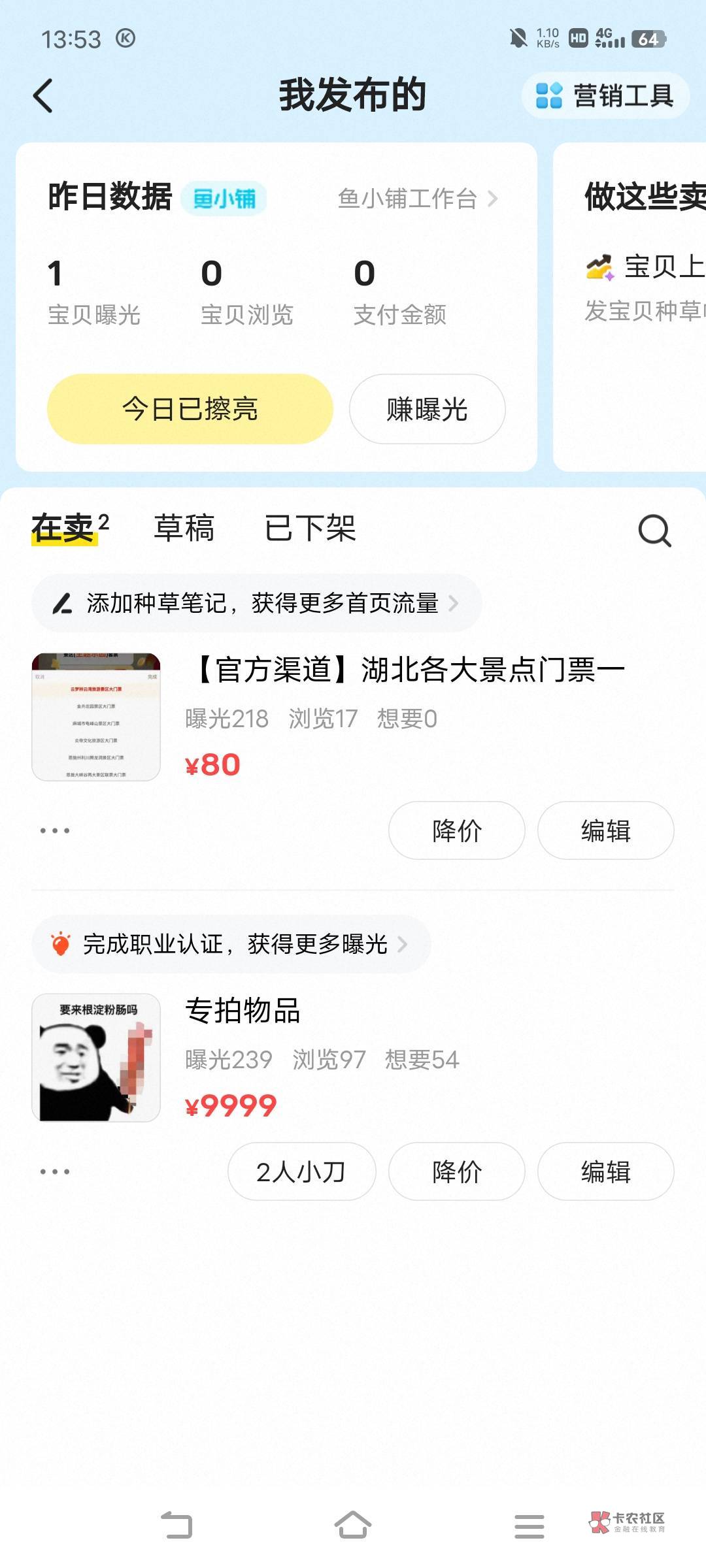 你有闲鱼小铺吗