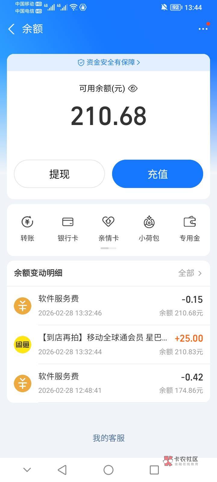 你移动全球通还没有200块钱啊身上