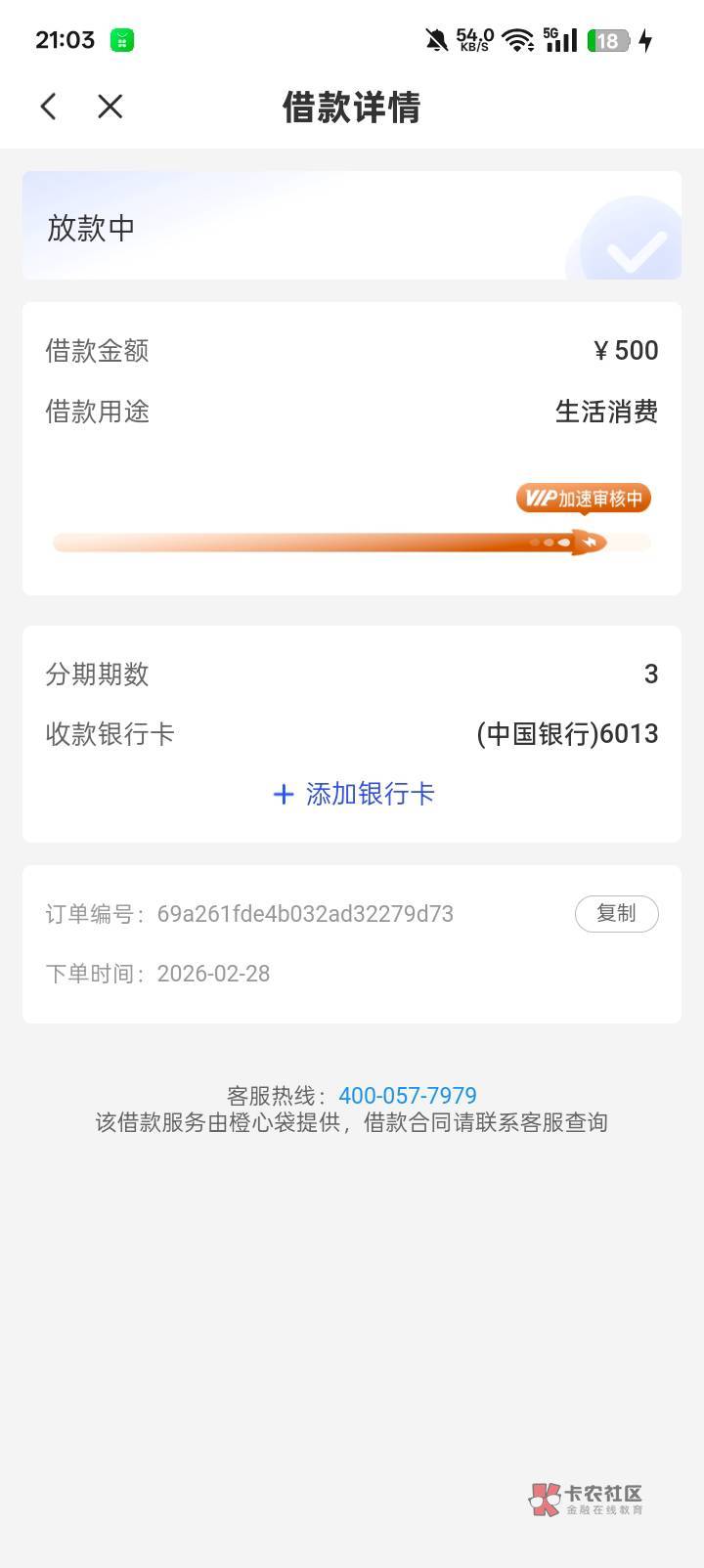 没扣成会员,就下了一笔500,冲微信了、这是第二笔,放款四天了