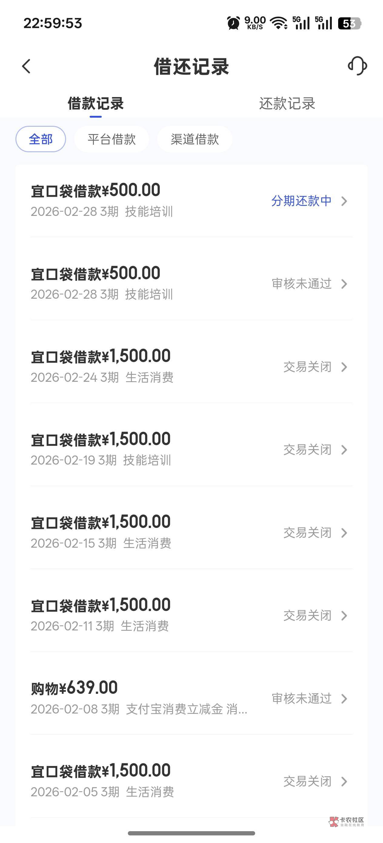 第二笔我拦截了没给会员费,700的那笔是第三笔申请的时候不能先用后付只能自己交56
