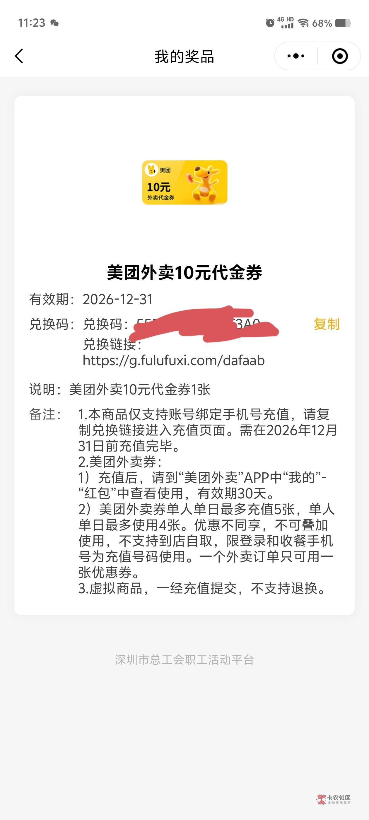 不知道是外卖券还是通用红包。应该是通用吧。