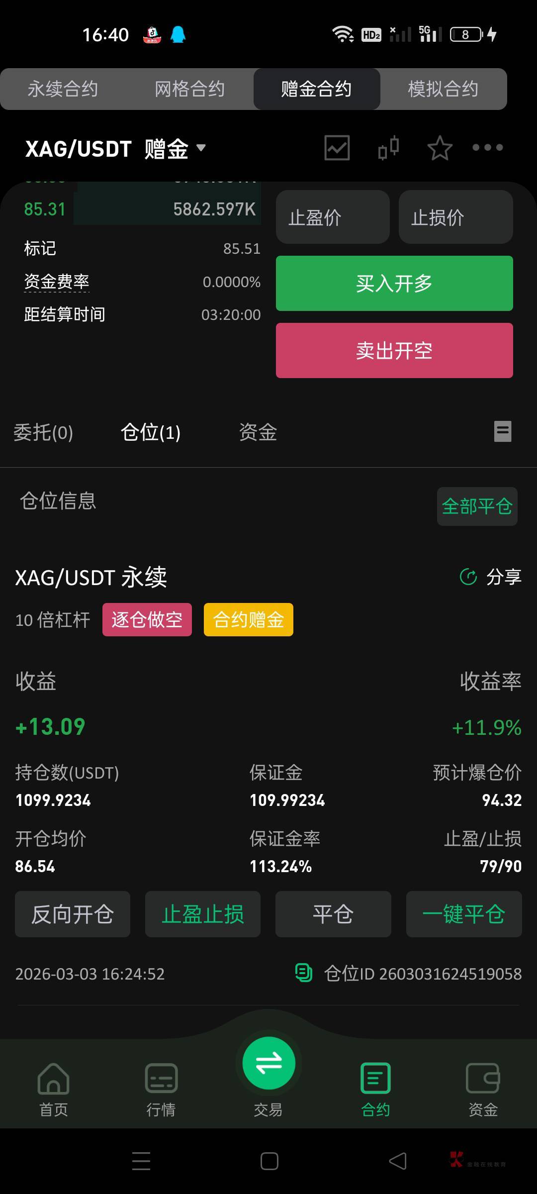 你充没,我充了101U,去永续合约开一倍杠杆快进快出了